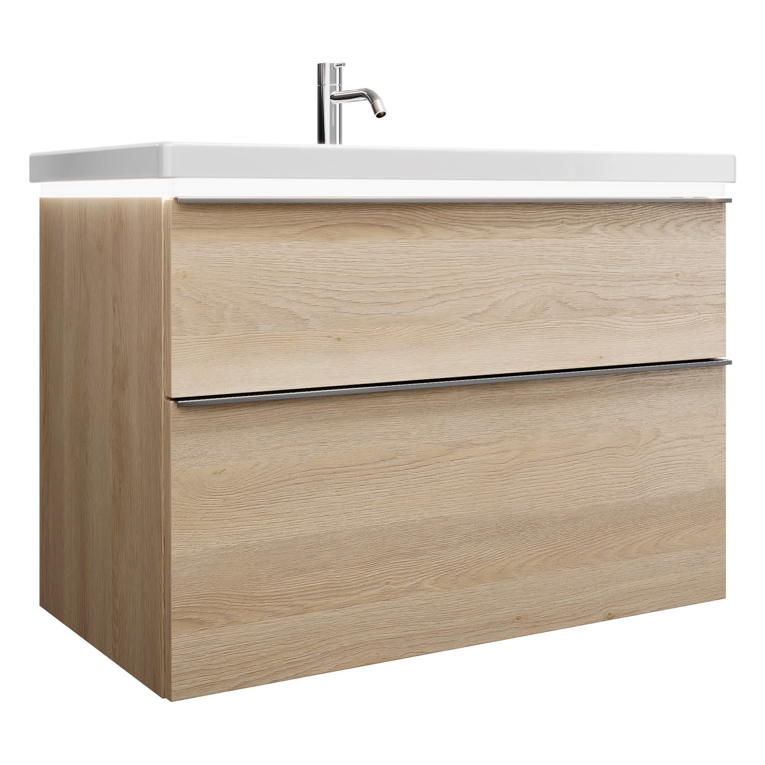 burgbad Eqio Waschtischkombination mit Keramik-Waschtisch mit LED-Beleuchtung, 93 cm, mit Griffleiste G0251