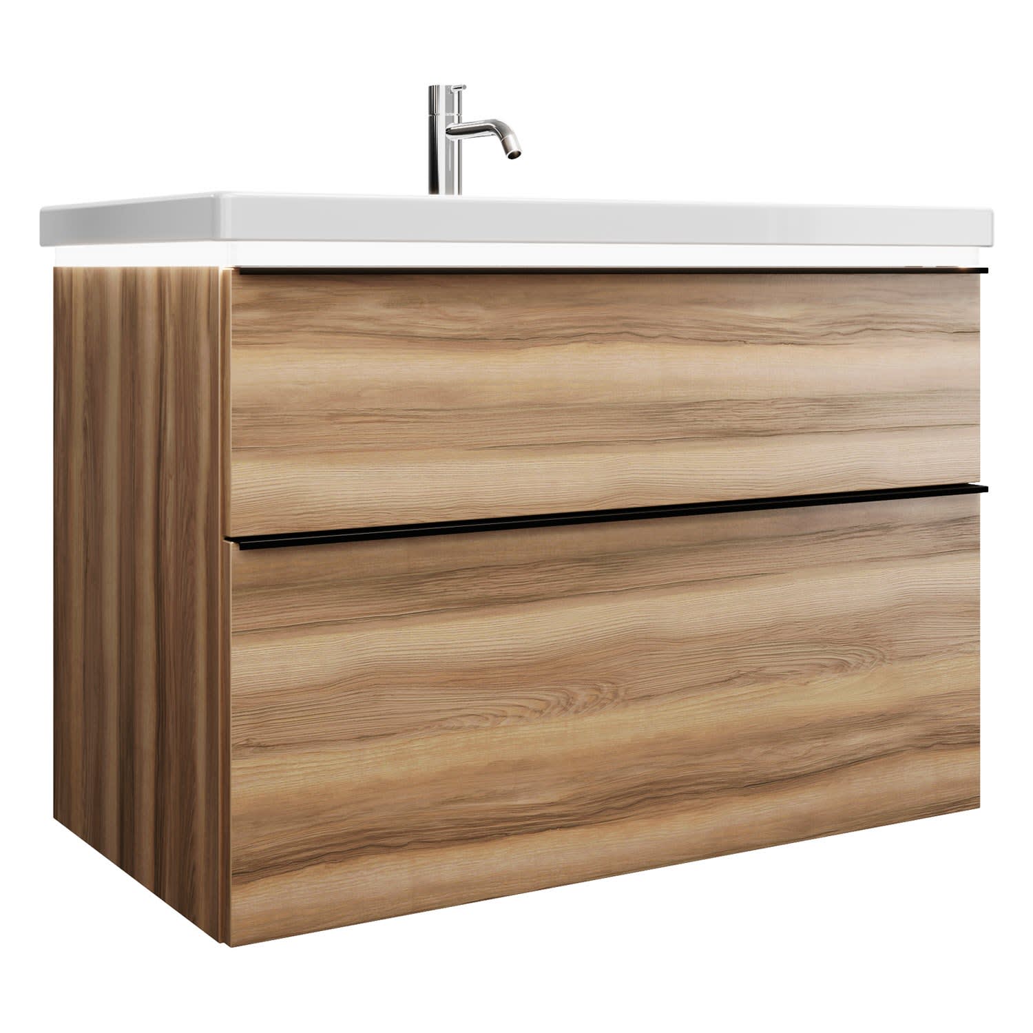 burgbad Eqio Waschtischkombination mit Keramik-Waschtisch mit LED-Beleuchtung, 93 cm, mit Griffleiste G0252