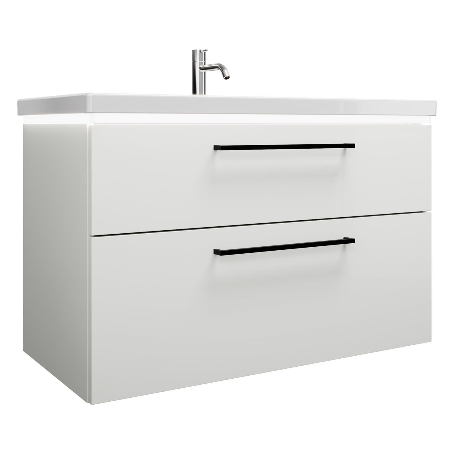 burgbad Eqio Waschtischkombination mit Keramik-Waschtisch mit LED-Beleuchtung, 103 cm, mit Stangengriff G0234