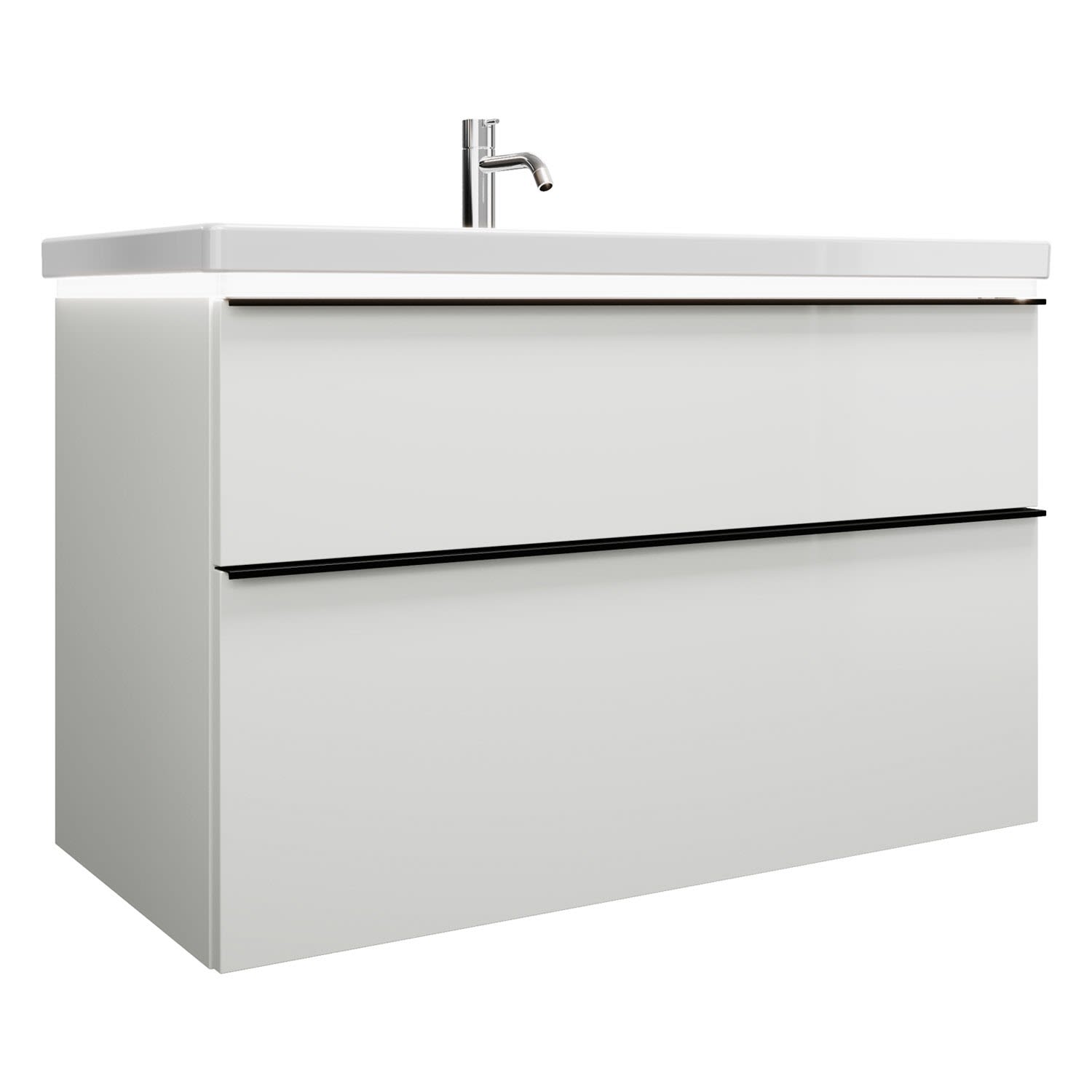 burgbad Eqio Waschtischkombination mit Keramik-Waschtisch mit LED-Beleuchtung, 103 cm, mit Griffleiste G0252