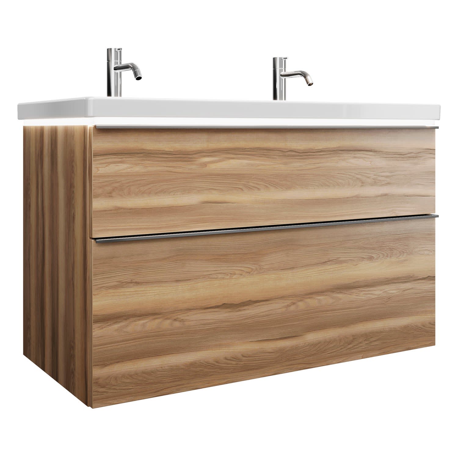 burgbad Eqio Waschtischkombination mit Keramik-Waschtisch mit LED-Beleuchtung, 103 cm, mit Griffleiste G0251