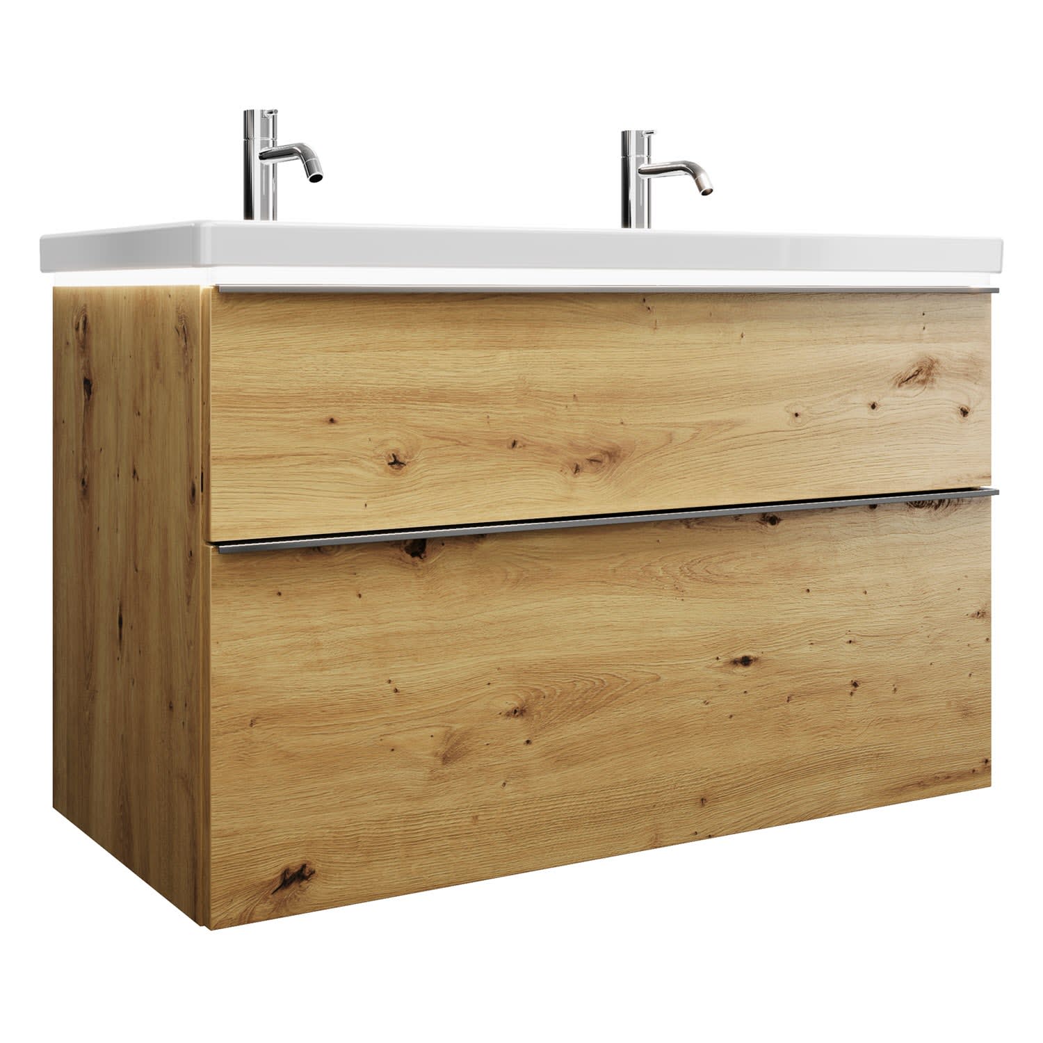 burgbad Eqio Waschtischkombination mit Keramik-Waschtisch mit LED-Beleuchtung, 103 cm, mit Griffleiste G0251