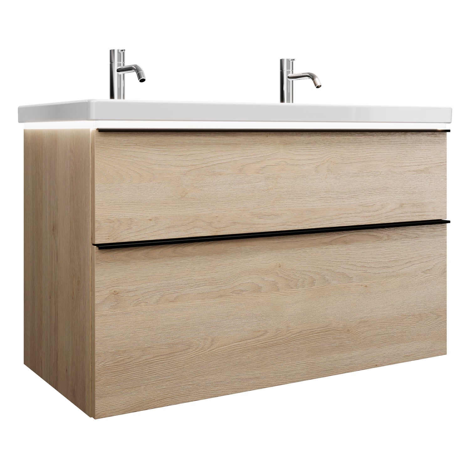 burgbad Eqio Waschtischkombination mit Keramik-Waschtisch mit LED-Beleuchtung, 103 cm, mit Griffleiste G0252