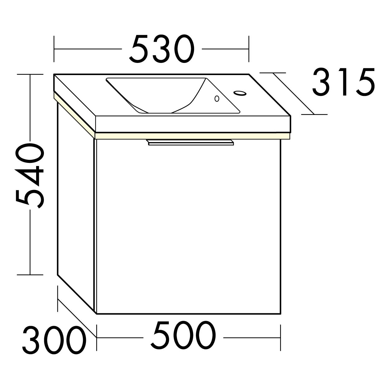 burgbad Eqio Waschtischkombination mit Keramik-Waschtisch mit LED-Beleuchtung, 53 cm, mit Griffleiste G0252