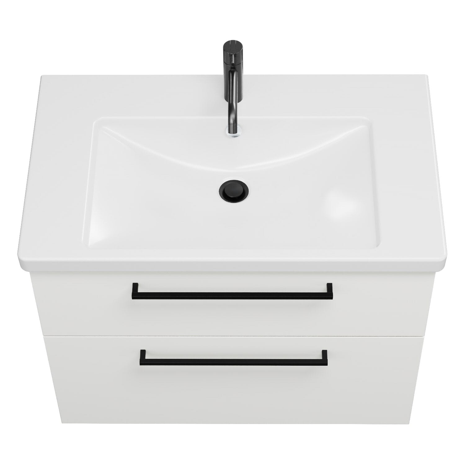 - 1 Schublade oben, 35 cm tief, mit Siphonausschnitt und Inneneinteilung
