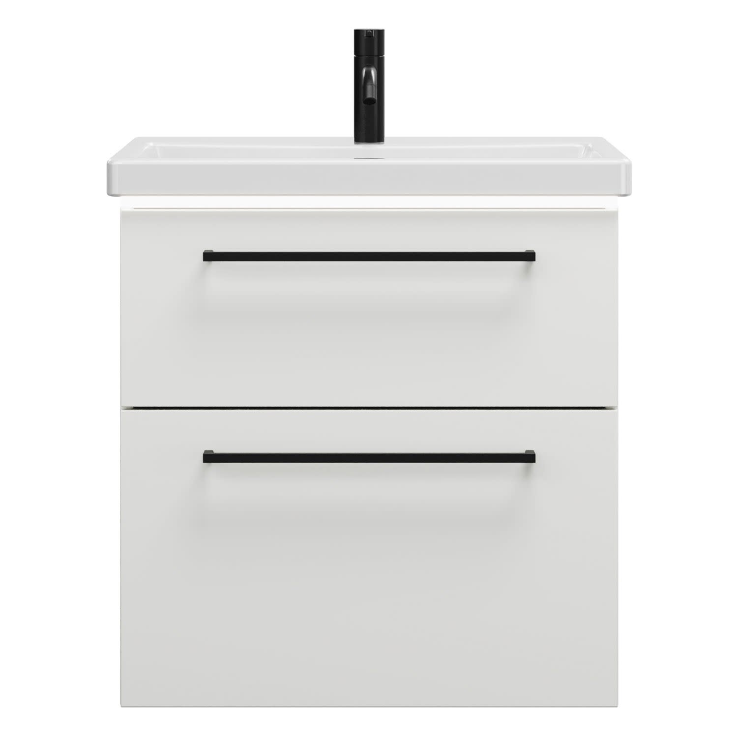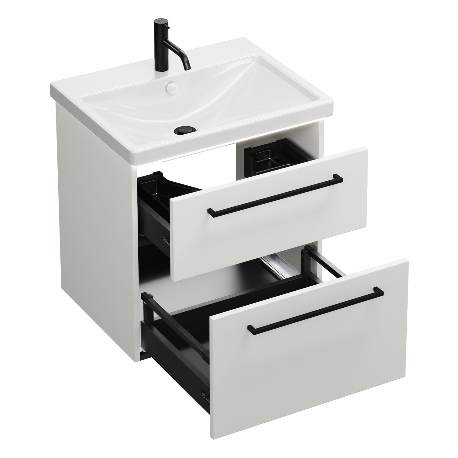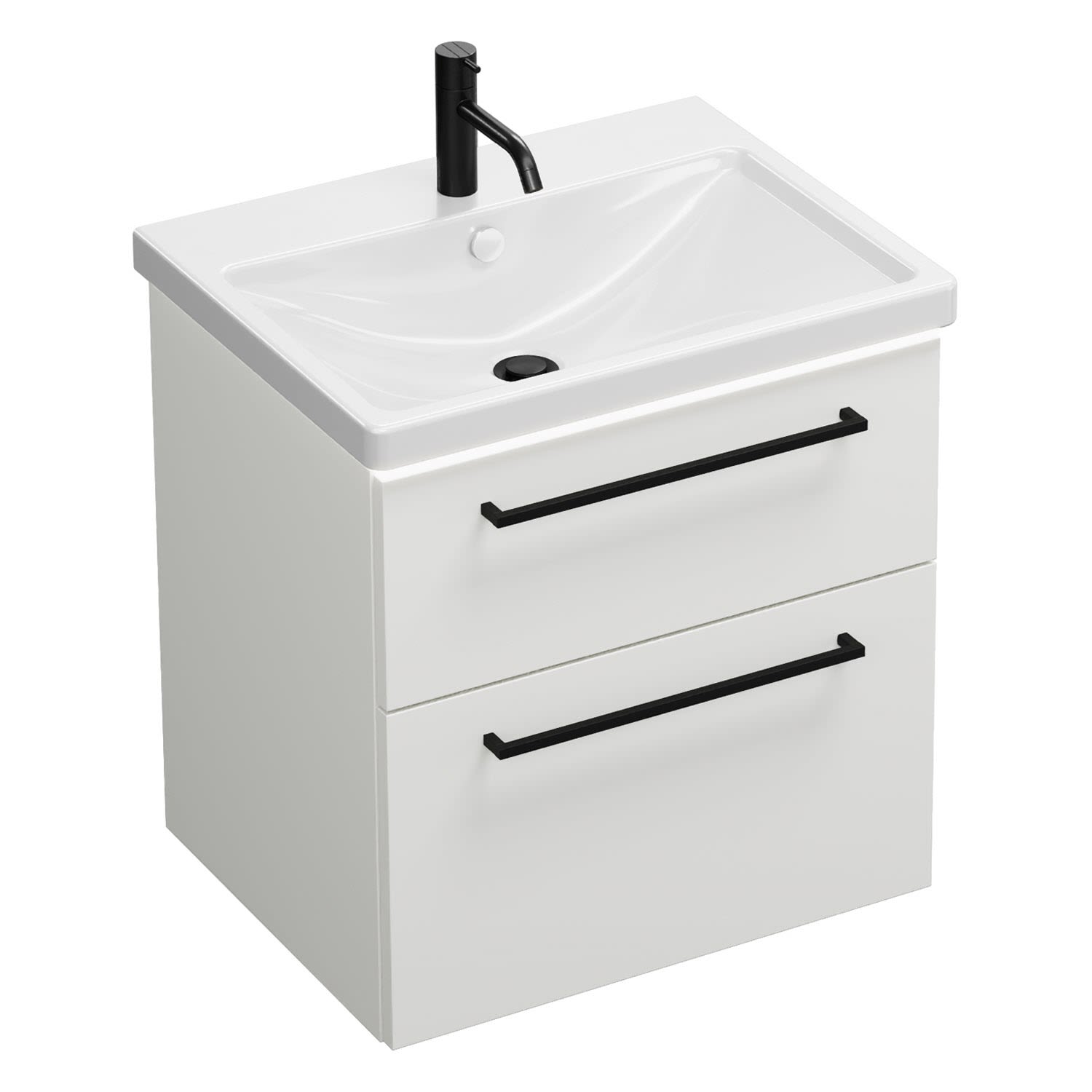 burgbad Eqio Waschtischkombination mit Keramik-Waschtisch mit LED-Beleuchtung, 63 cm, mit Stangengriff G0234