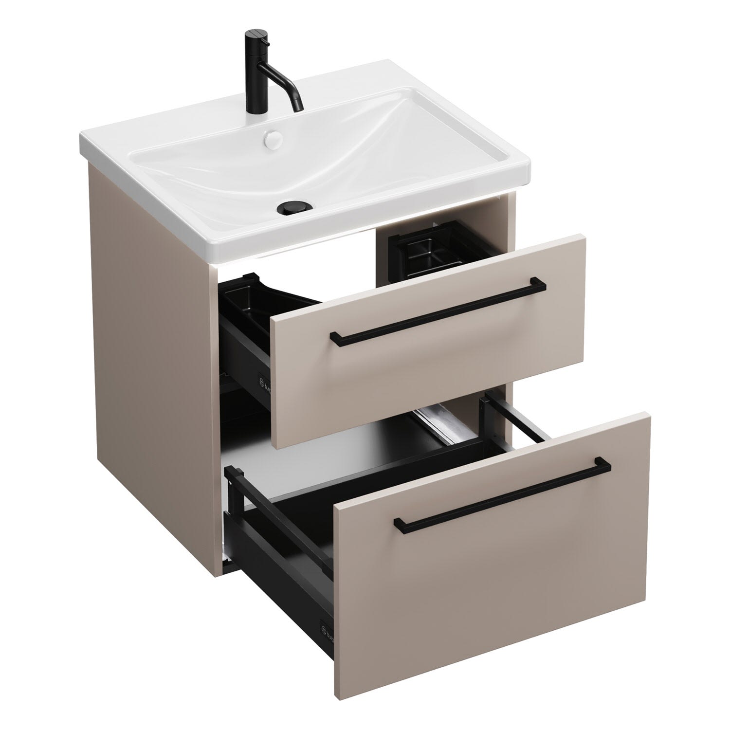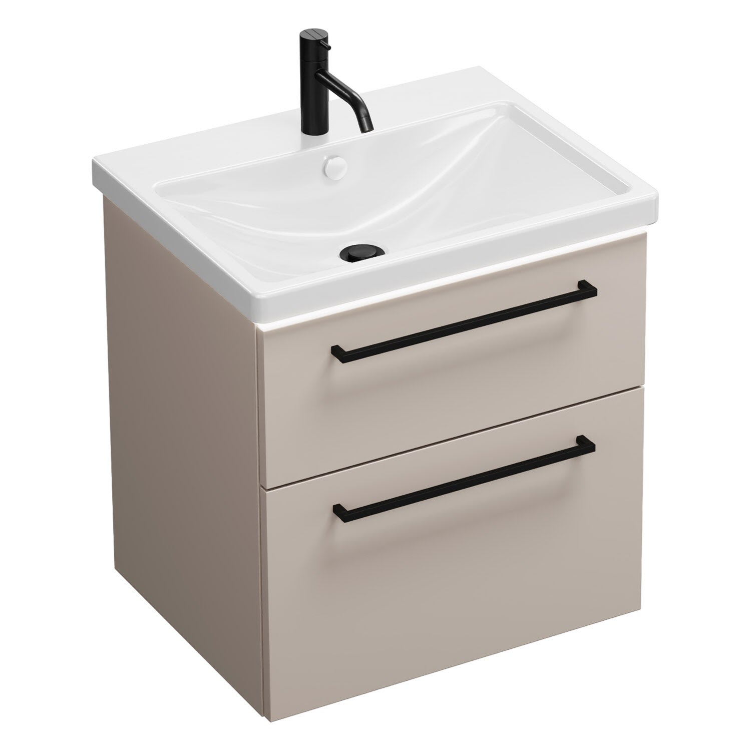 burgbad Eqio Waschtischkombination mit Keramik-Waschtisch mit LED-Beleuchtung, 63 cm, mit Stangengriff G0234