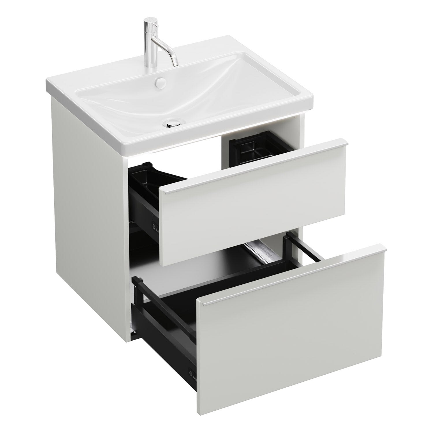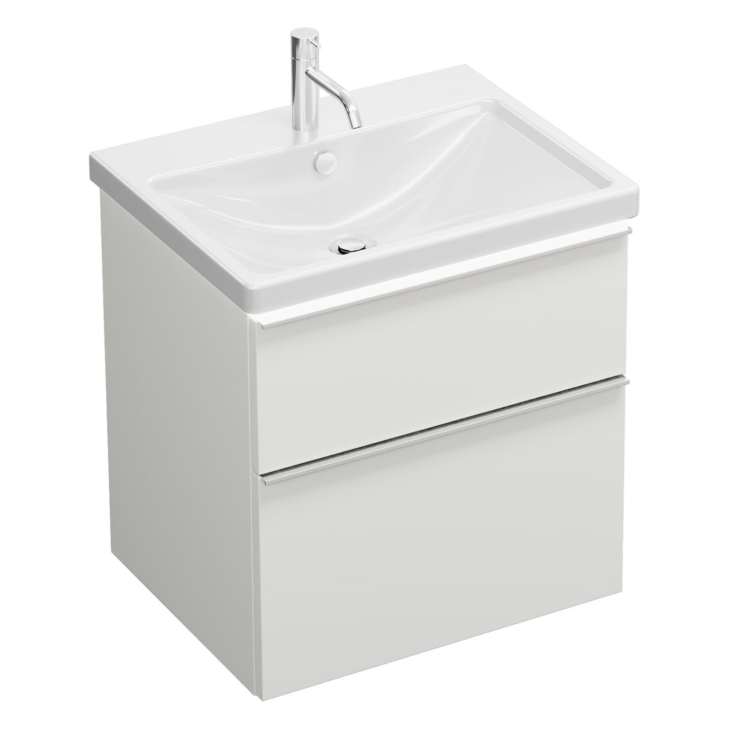 burgbad Eqio Waschtischkombination mit Keramik-Waschtisch mit LED-Beleuchtung, 63 cm, mit Griffleiste G0251