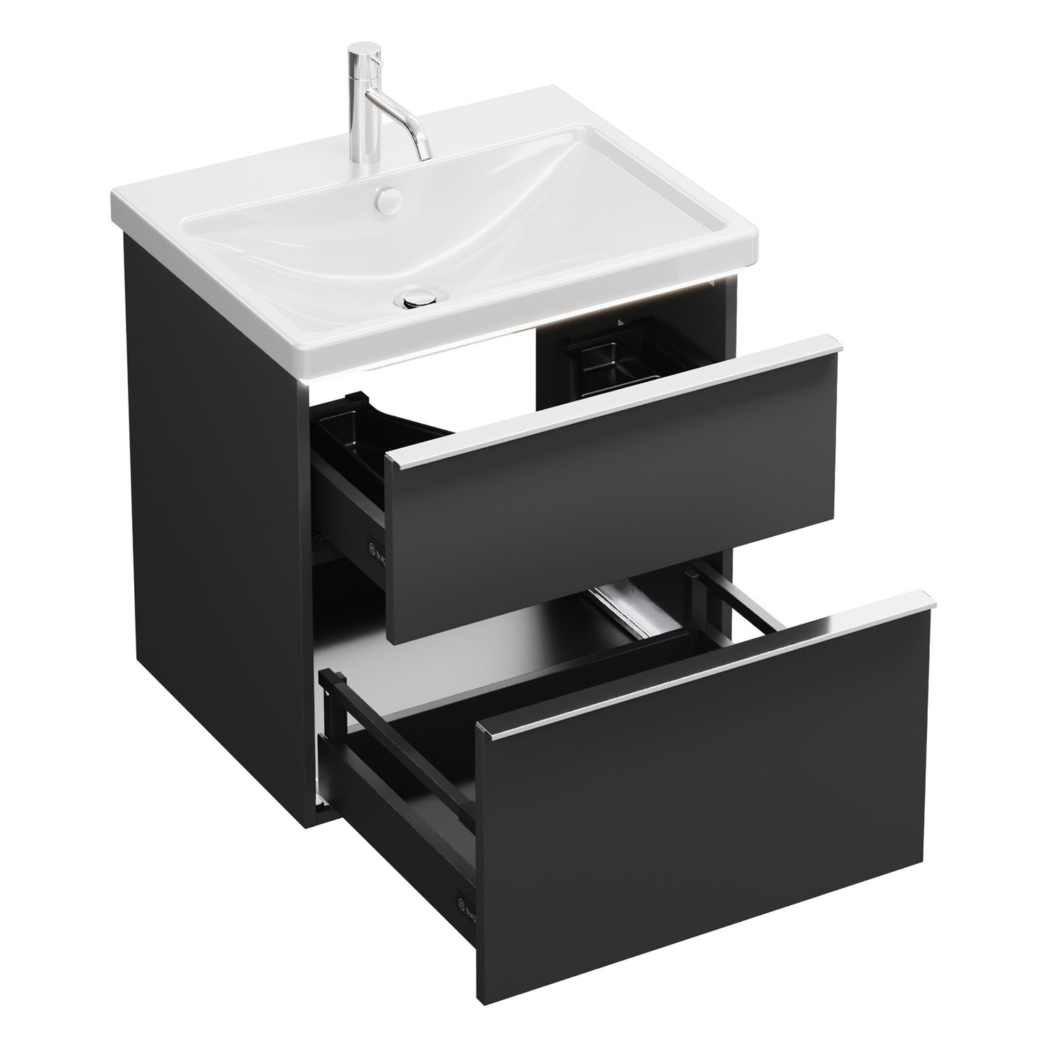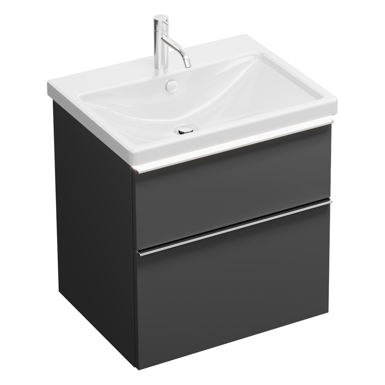 burgbad Eqio Waschtischkombination mit Keramik-Waschtisch mit LED-Beleuchtung, 63 cm, mit Griffleiste G0251