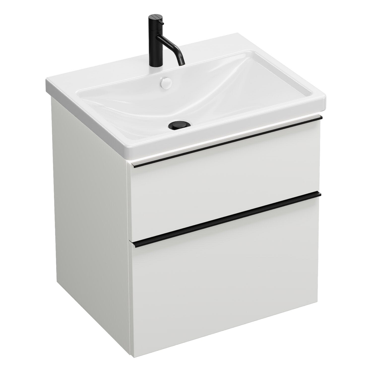 burgbad Eqio Waschtischkombination mit Keramik-Waschtisch mit LED-Beleuchtung, 63 cm, mit Griffleiste G0252