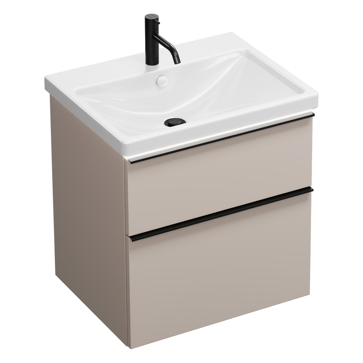 burgbad Eqio Waschtischkombination mit Keramik-Waschtisch mit LED-Beleuchtung, 63 cm, mit Griffleiste G0252
