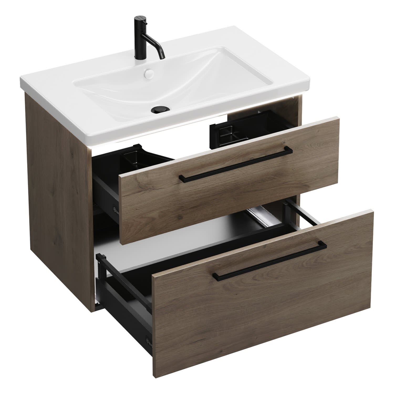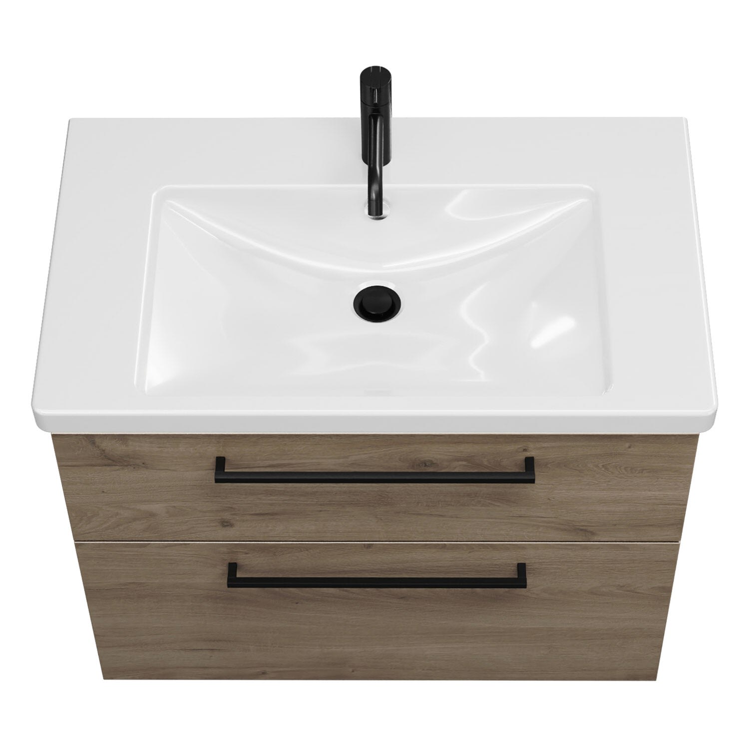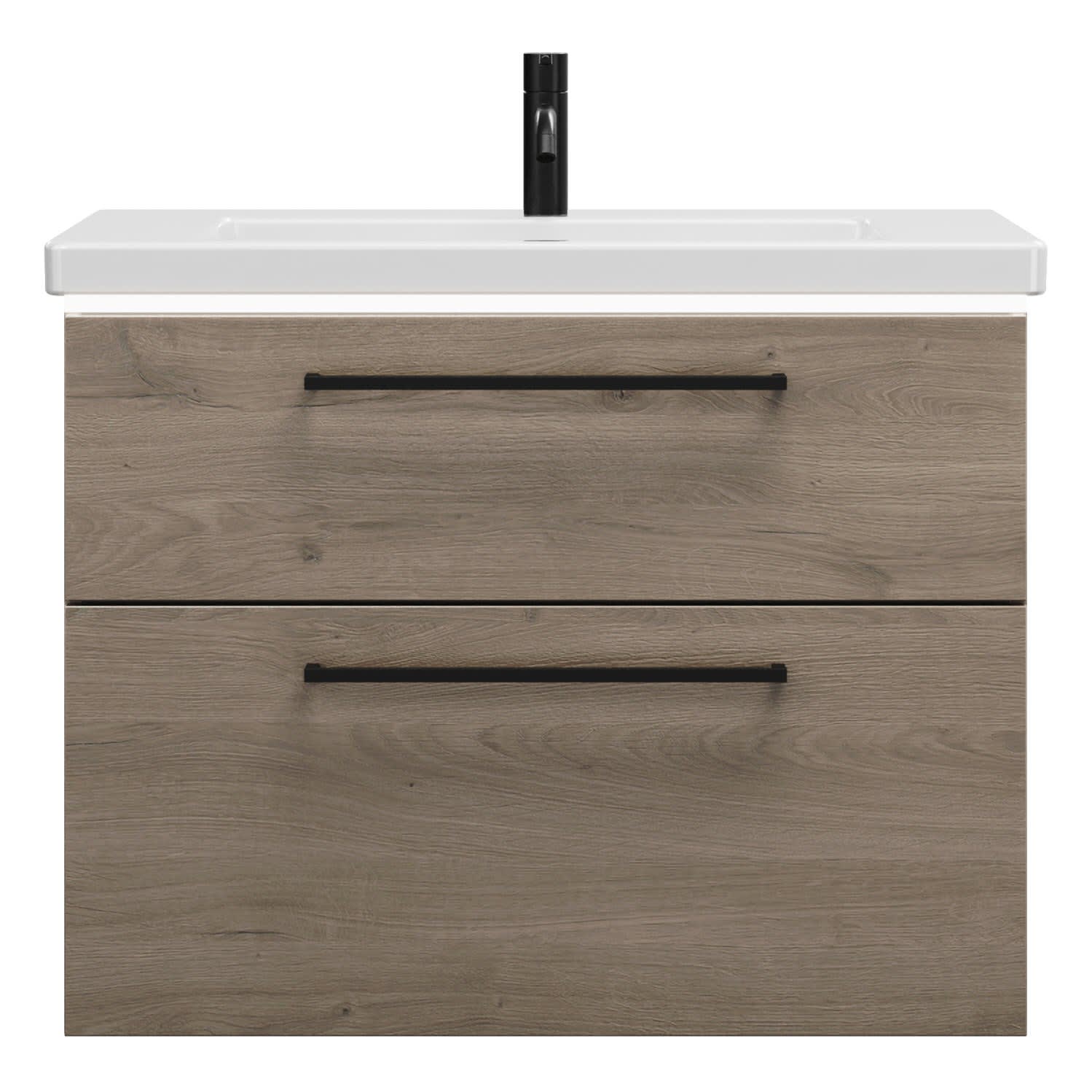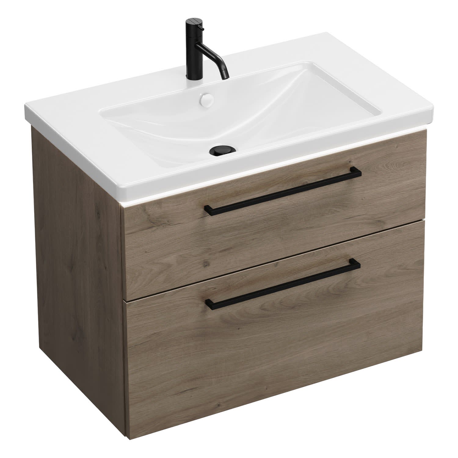 burgbad Eqio Waschtischkombination mit Keramik-Waschtisch mit LED-Beleuchtung, 83 cm, mit Stangengriff G0234