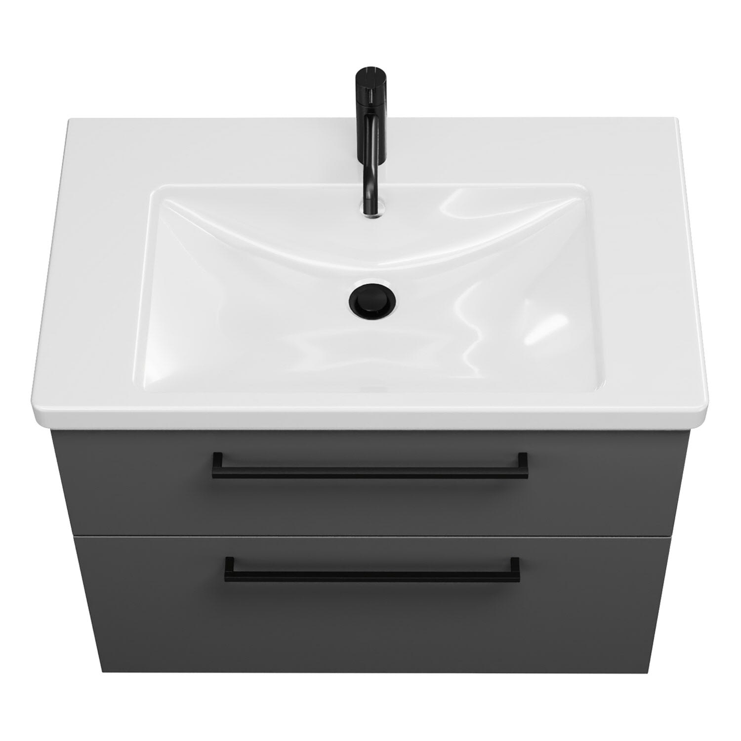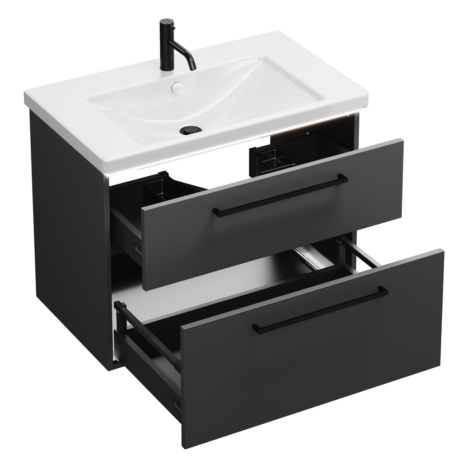 burgbad Eqio Waschtischkombination mit Keramik-Waschtisch mit LED-Beleuchtung, 83 cm, mit Stangengriff G0234
