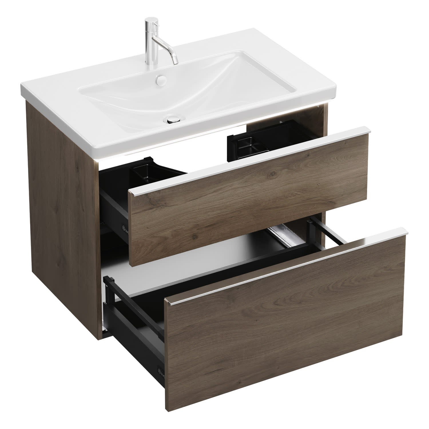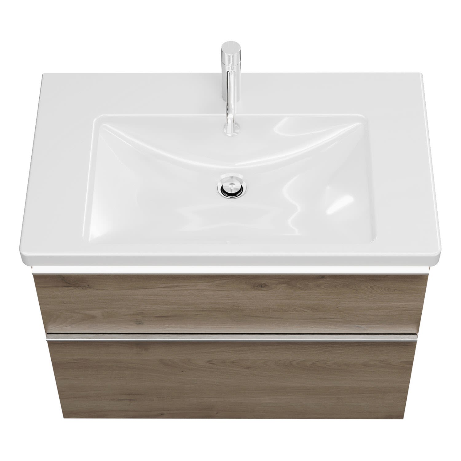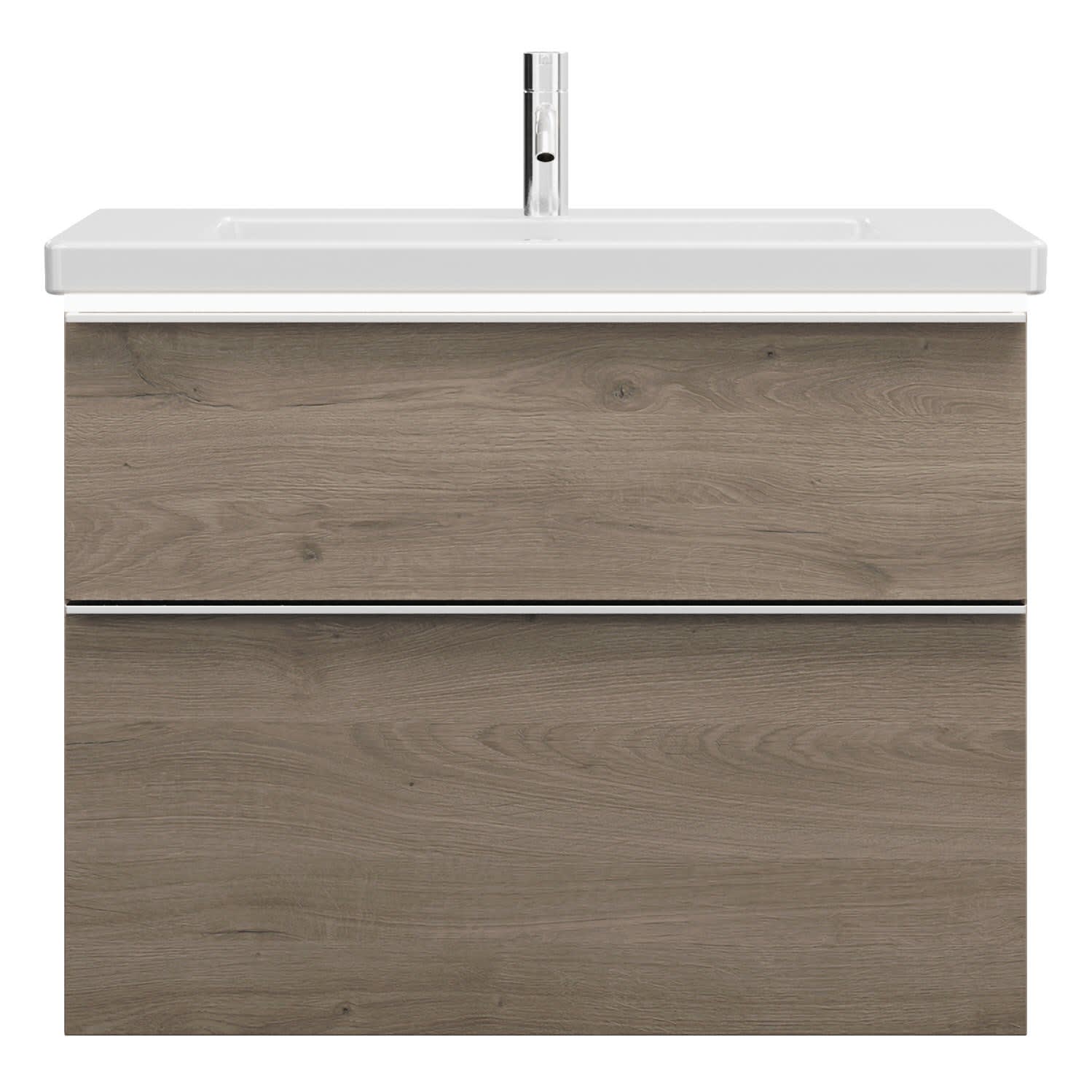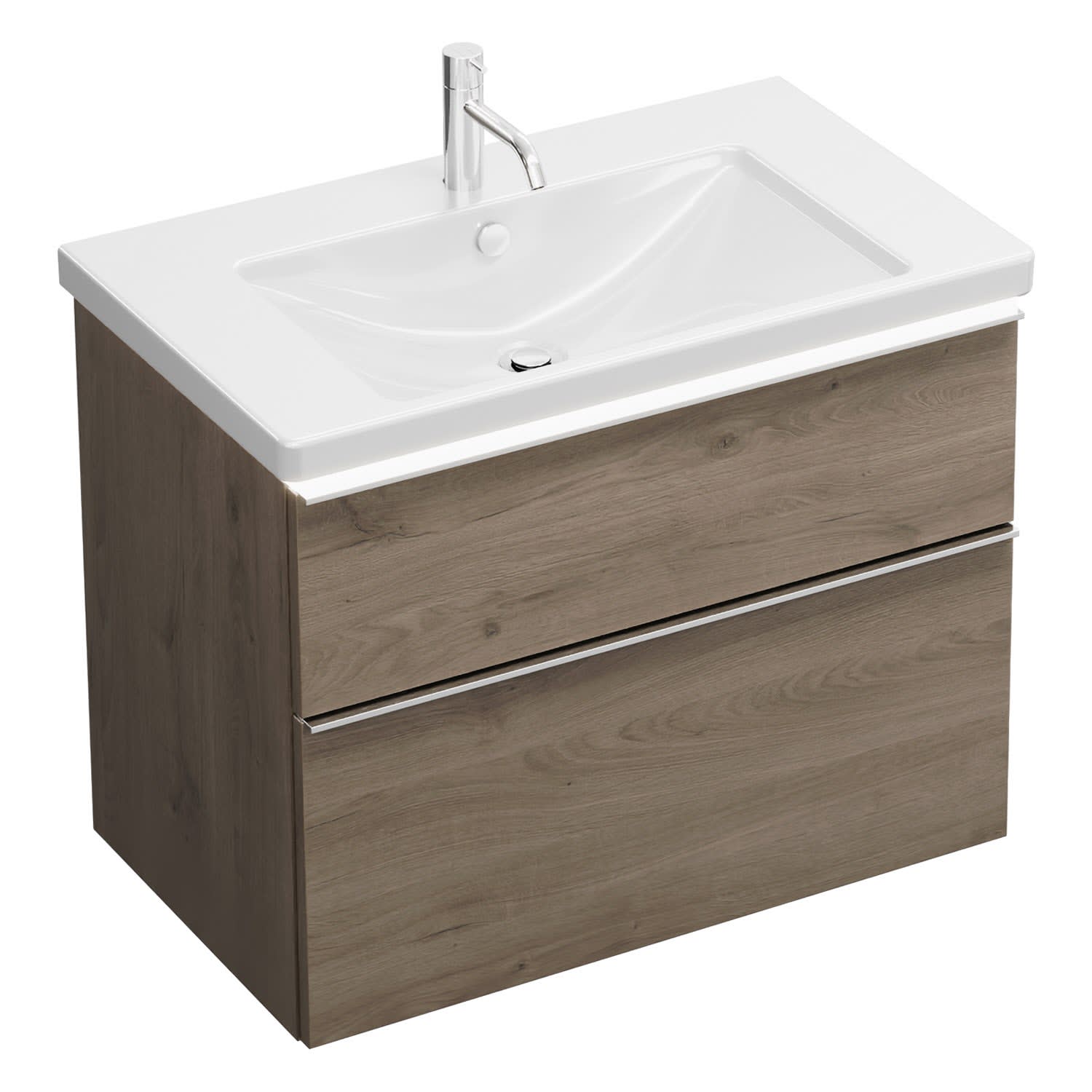 burgbad Eqio Waschtischkombination mit Keramik-Waschtisch mit LED-Beleuchtung, 83 cm, mit Griffleiste G0251