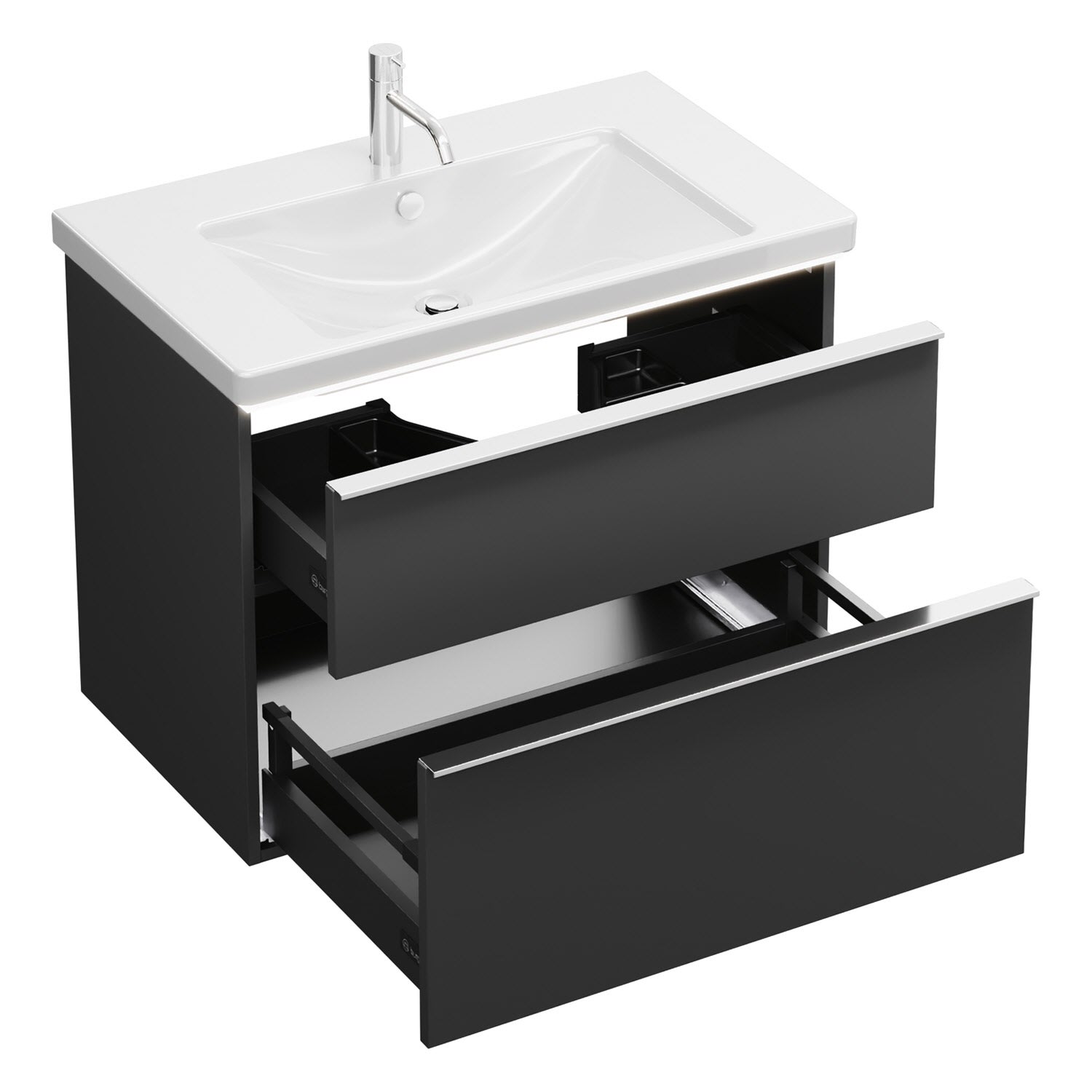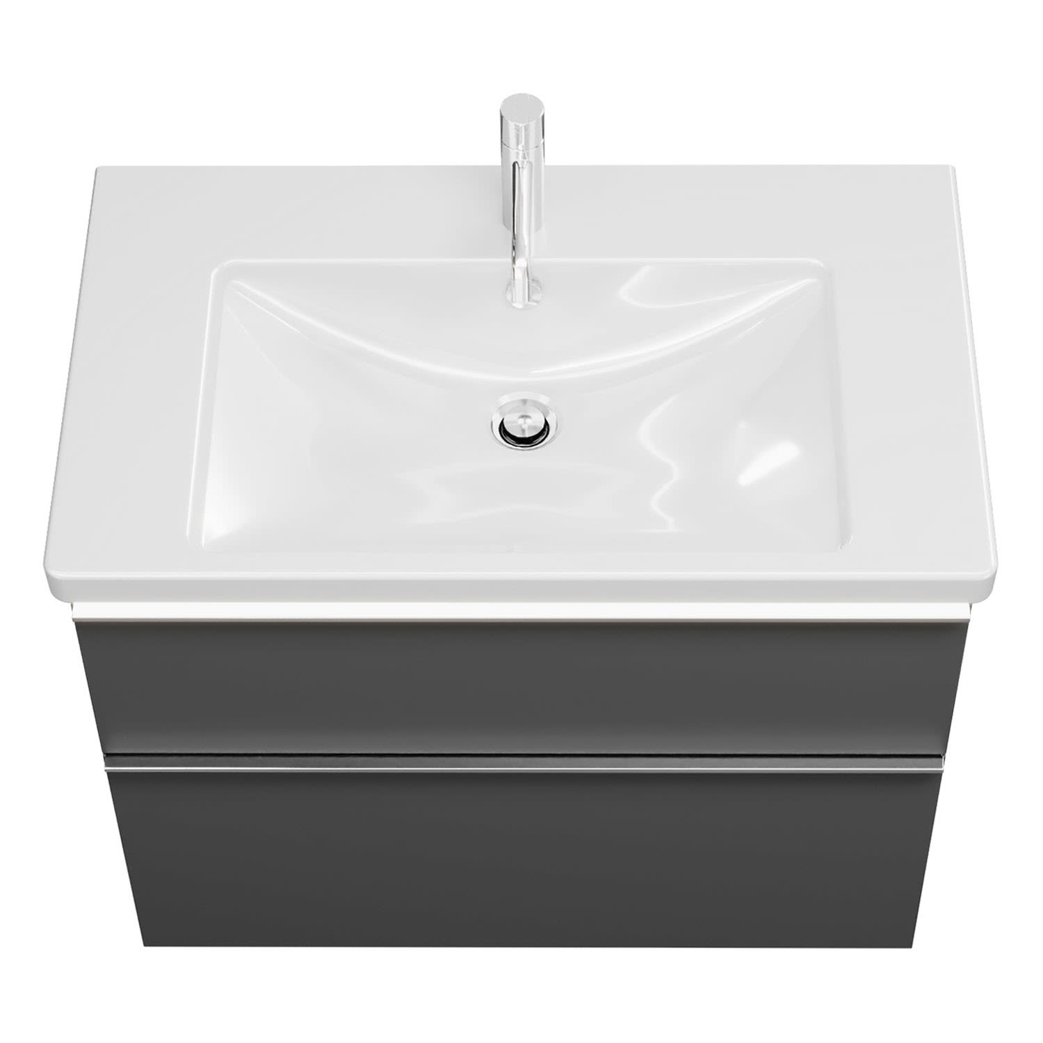 burgbad Eqio Waschtischkombination mit Keramik-Waschtisch mit LED-Beleuchtung, 83 cm, mit Griffleiste G0251