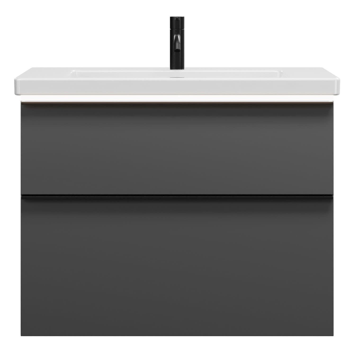 burgbad Eqio Waschtischkombination mit Keramik-Waschtisch mit LED-Beleuchtung, 83 cm, mit Griffleiste G0252