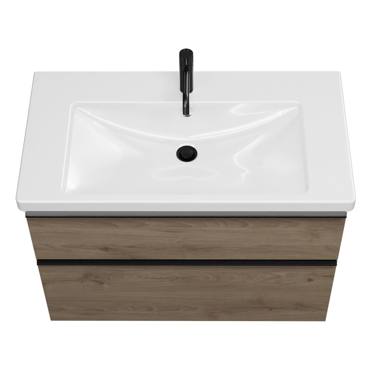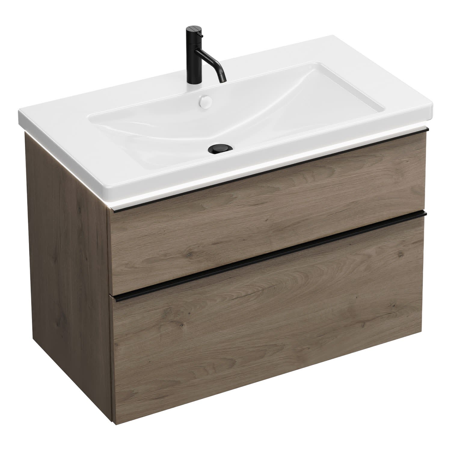 burgbad Eqio Waschtischkombination mit Keramik-Waschtisch mit LED-Beleuchtung, 93 cm, mit Griffleiste G0252