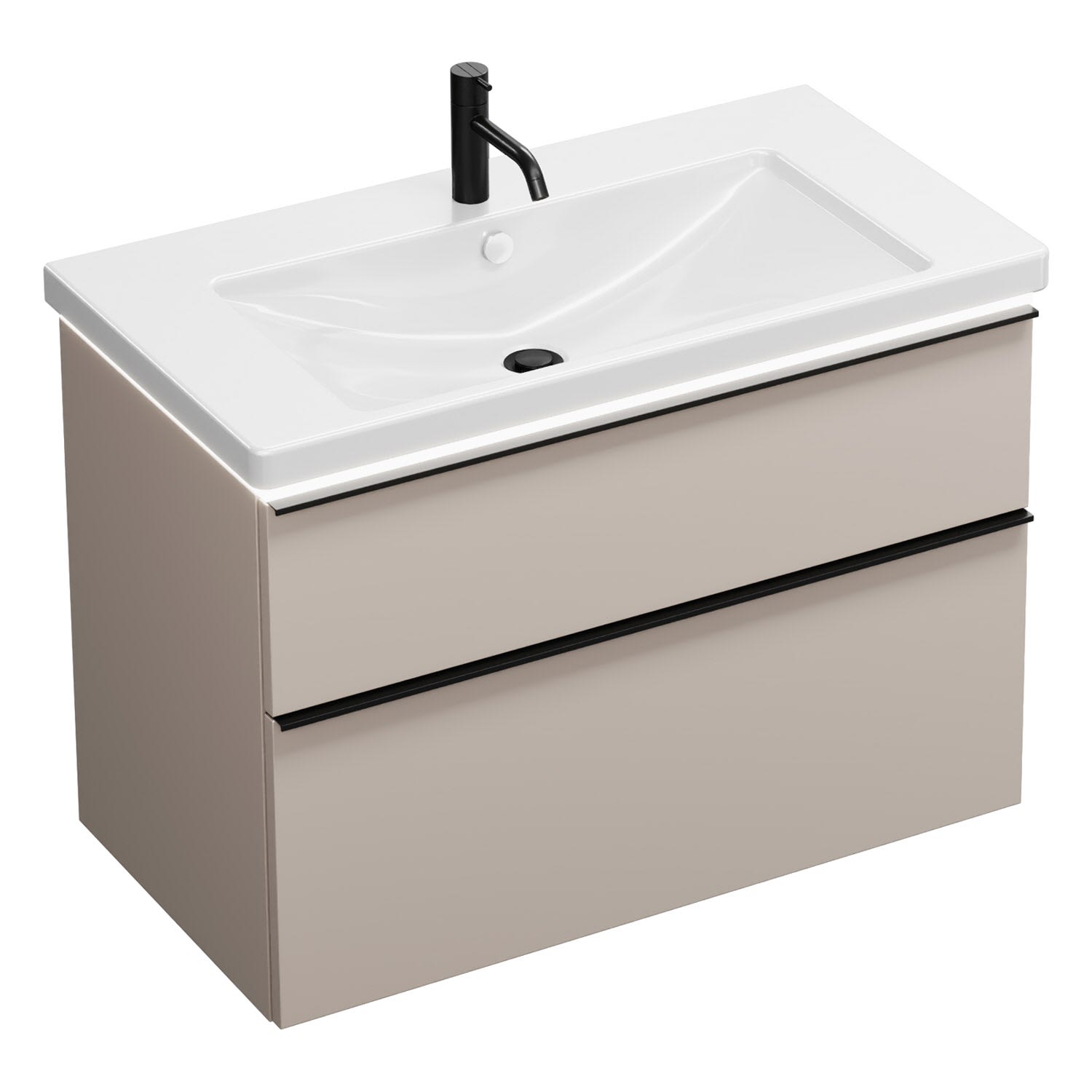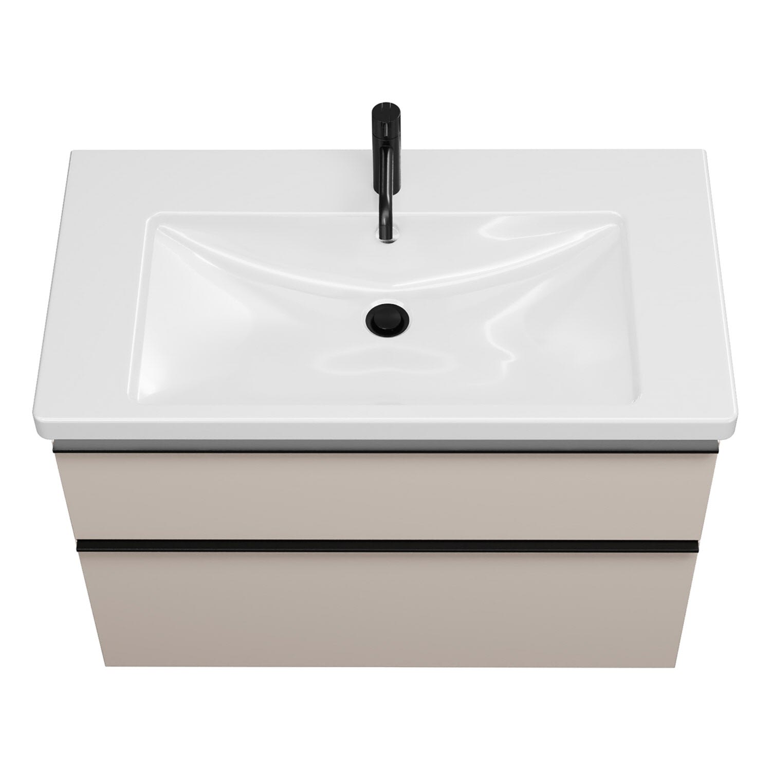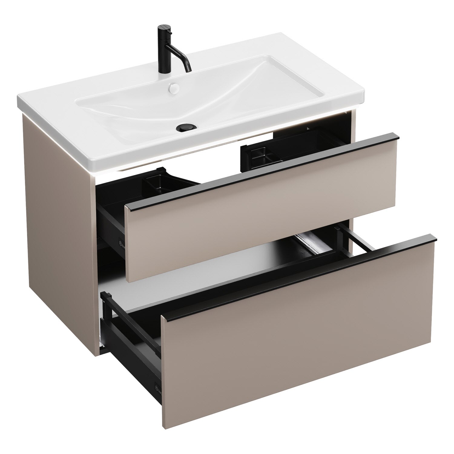 - 1 Schublade oben, 35 cm tief, mit Siphonausschnitt und Inneneinteilung