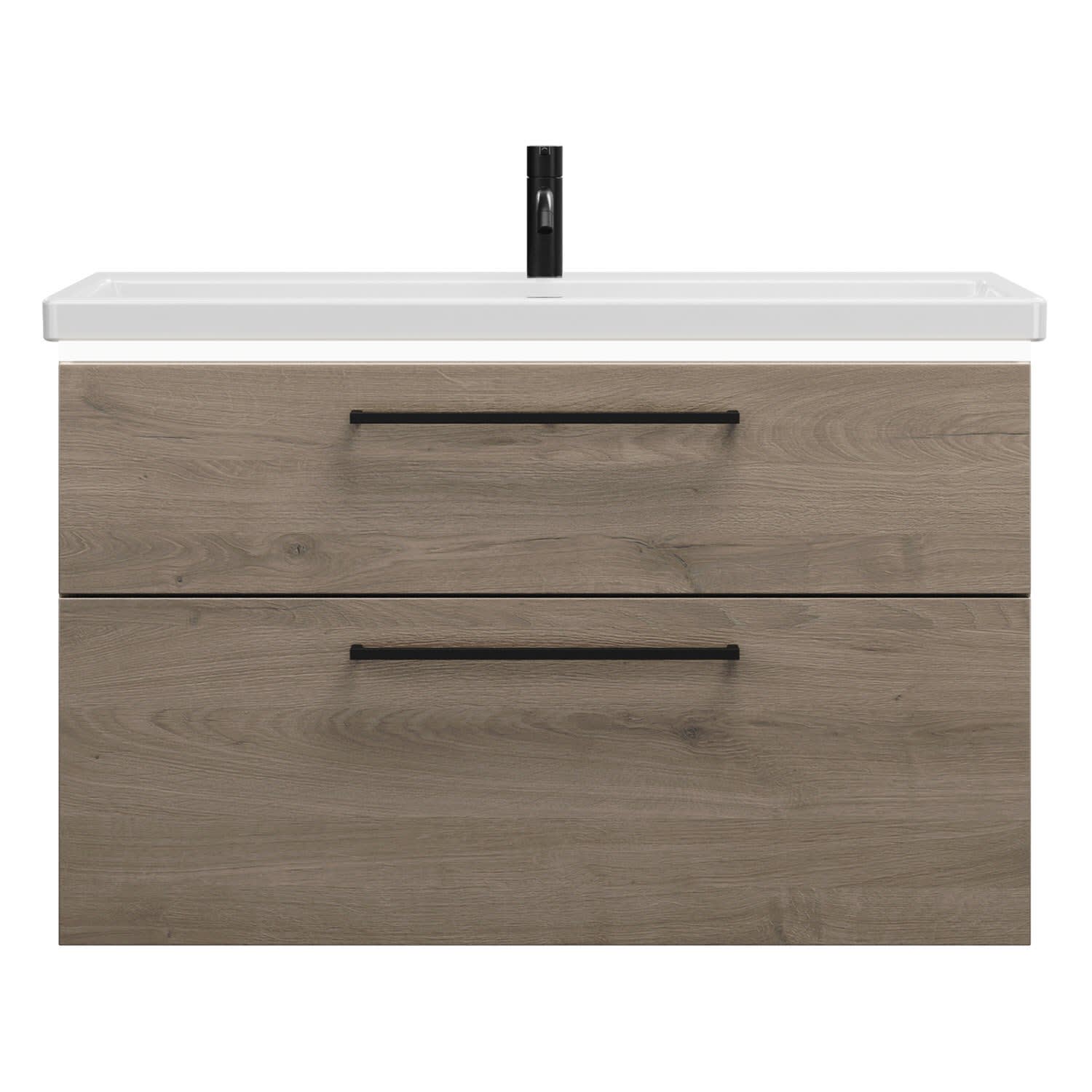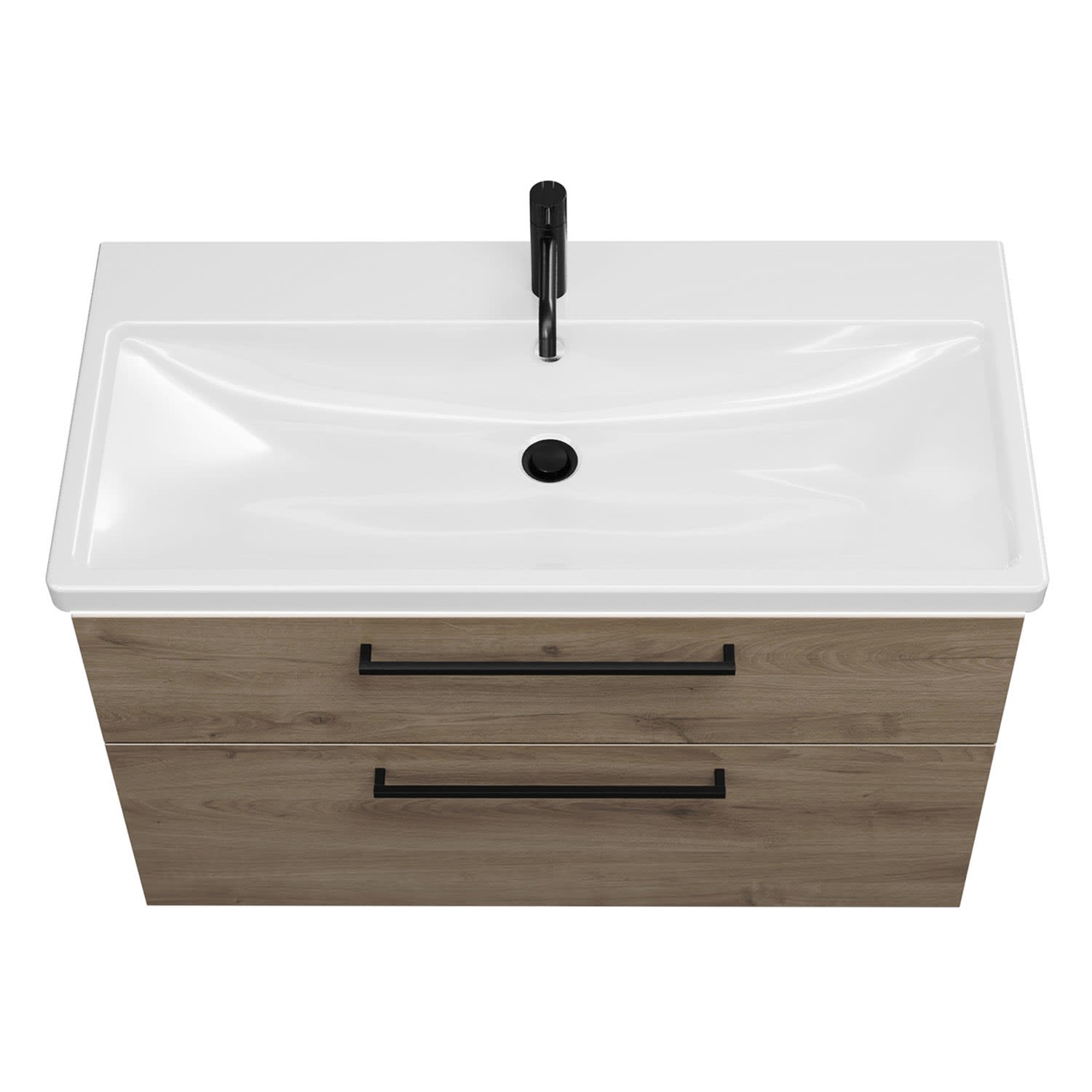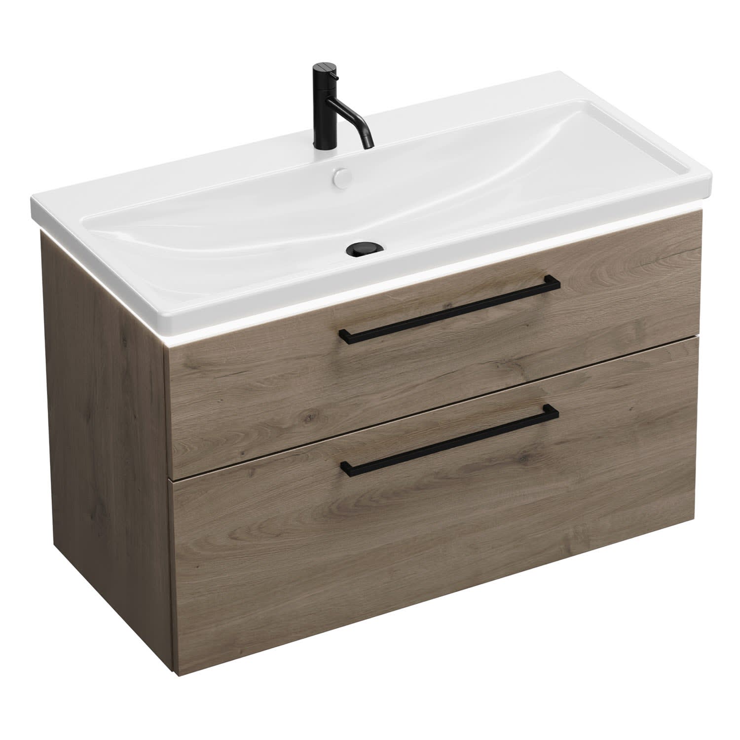 burgbad Eqio Waschtischkombination mit Keramik-Waschtisch mit LED-Beleuchtung, 103 cm, mit Stangengriff G0234