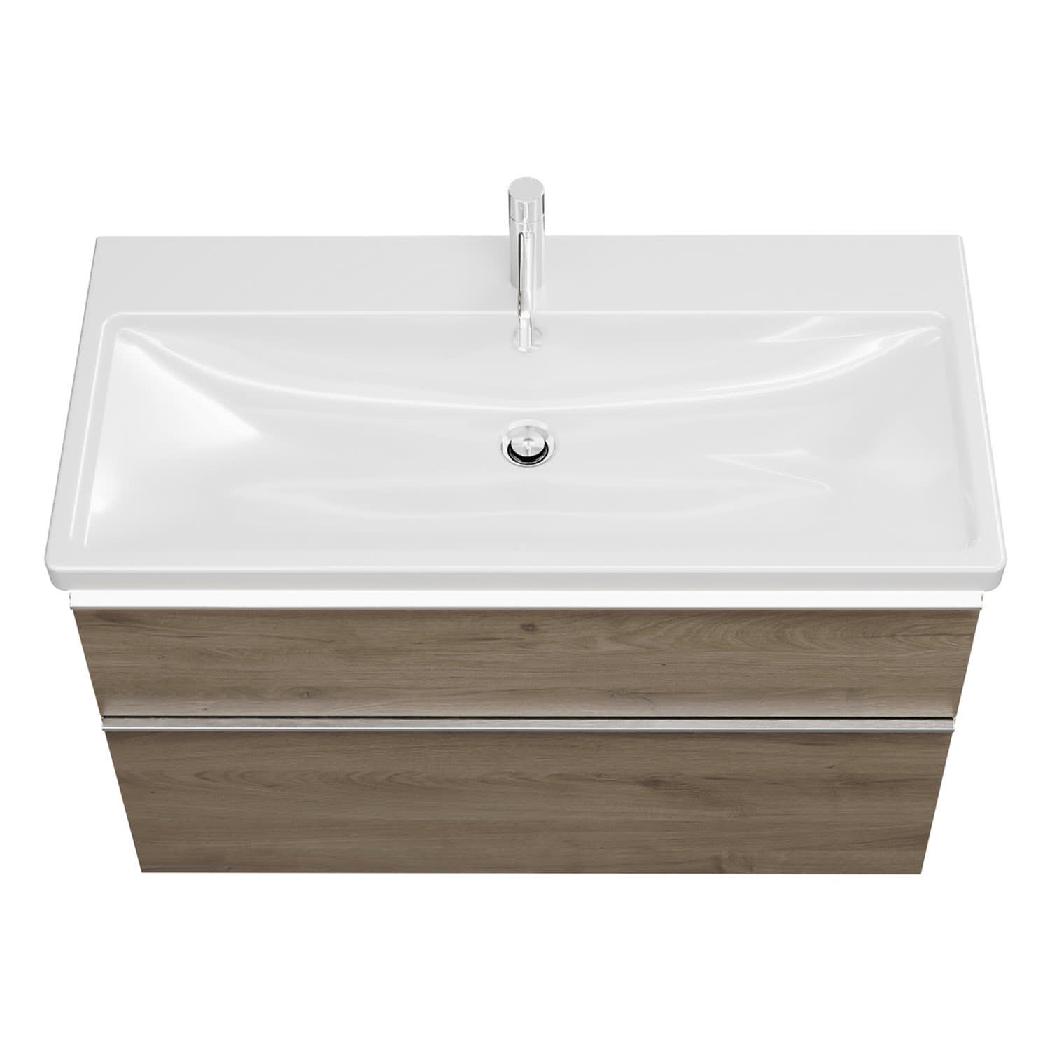 burgbad Eqio Waschtischkombination mit Keramik-Waschtisch mit LED-Beleuchtung, 103 cm, mit Griffleiste G0251