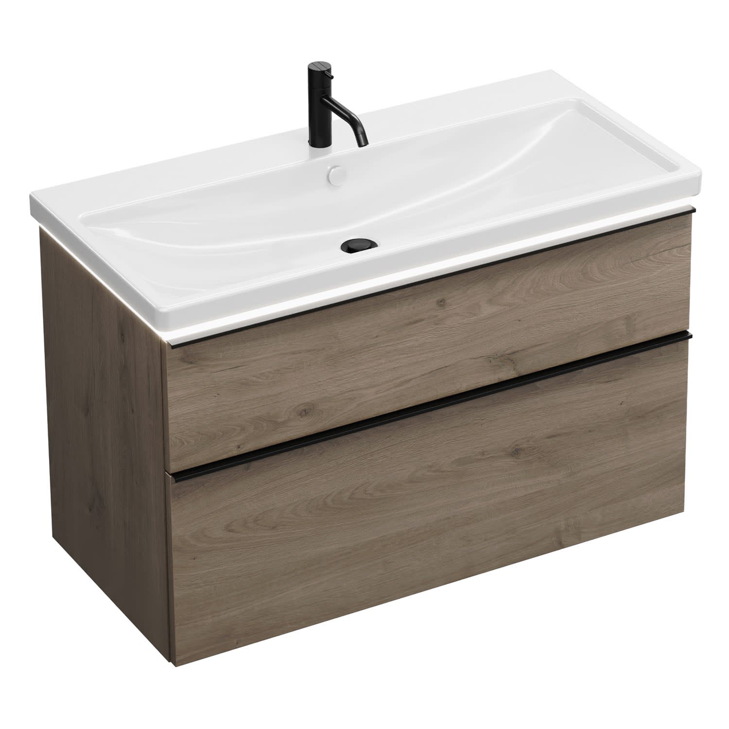 burgbad Eqio Waschtischkombination mit Keramik-Waschtisch mit LED-Beleuchtung, 103 cm, mit Griffleiste G0252