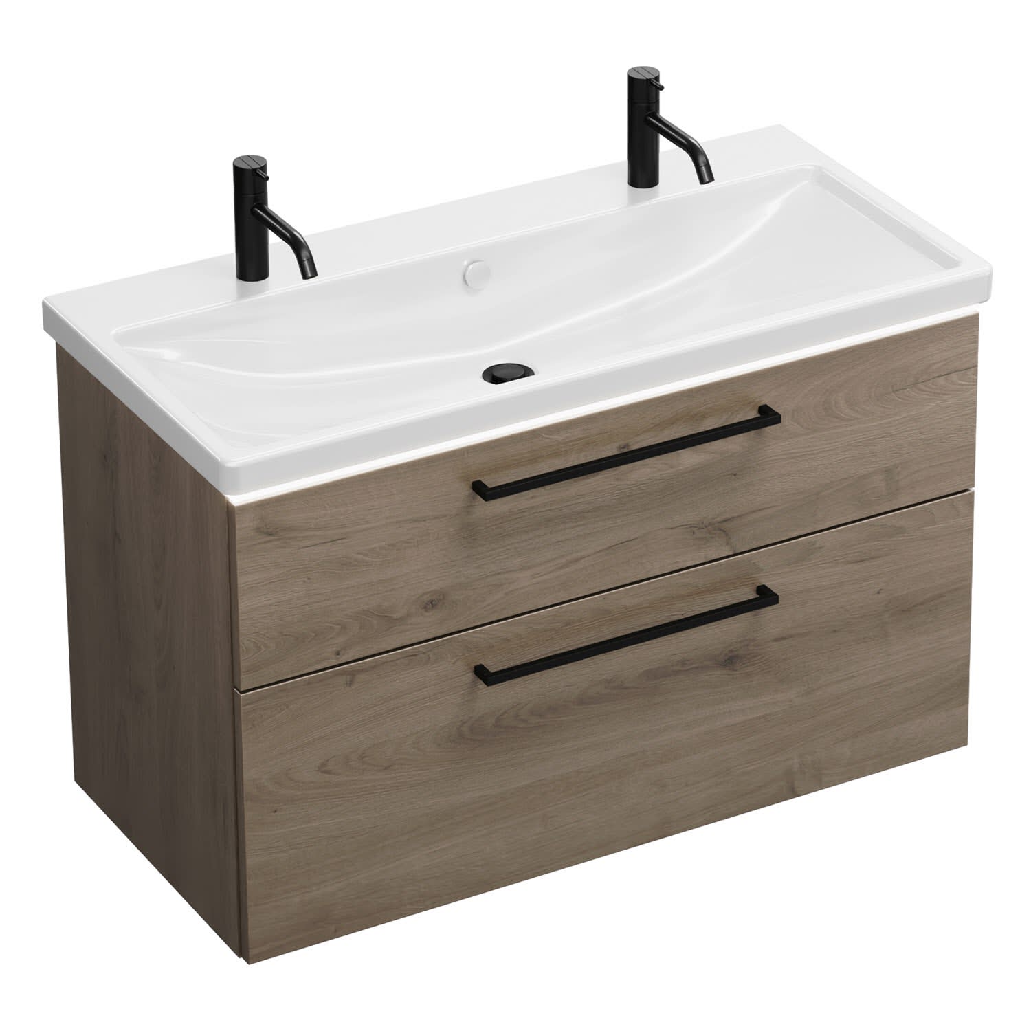 burgbad Eqio Waschtischkombination mit Keramik-Waschtisch mit LED-Beleuchtung, 103 cm, mit Stangengriff G0234