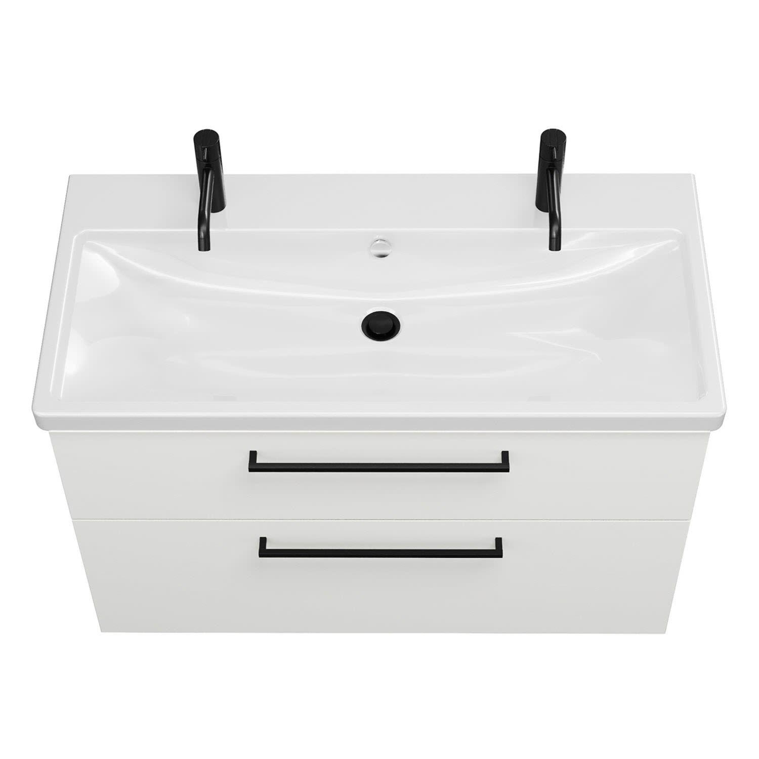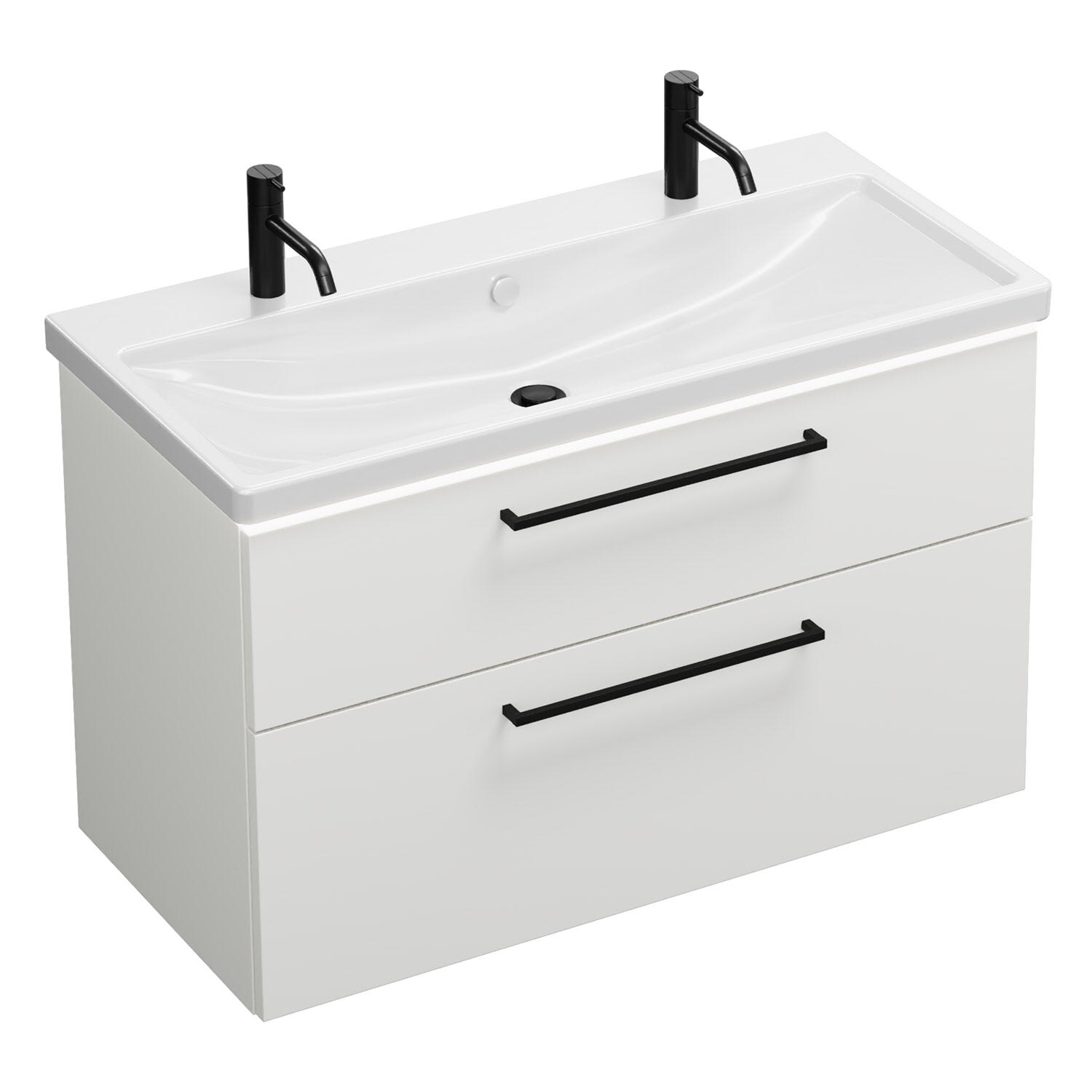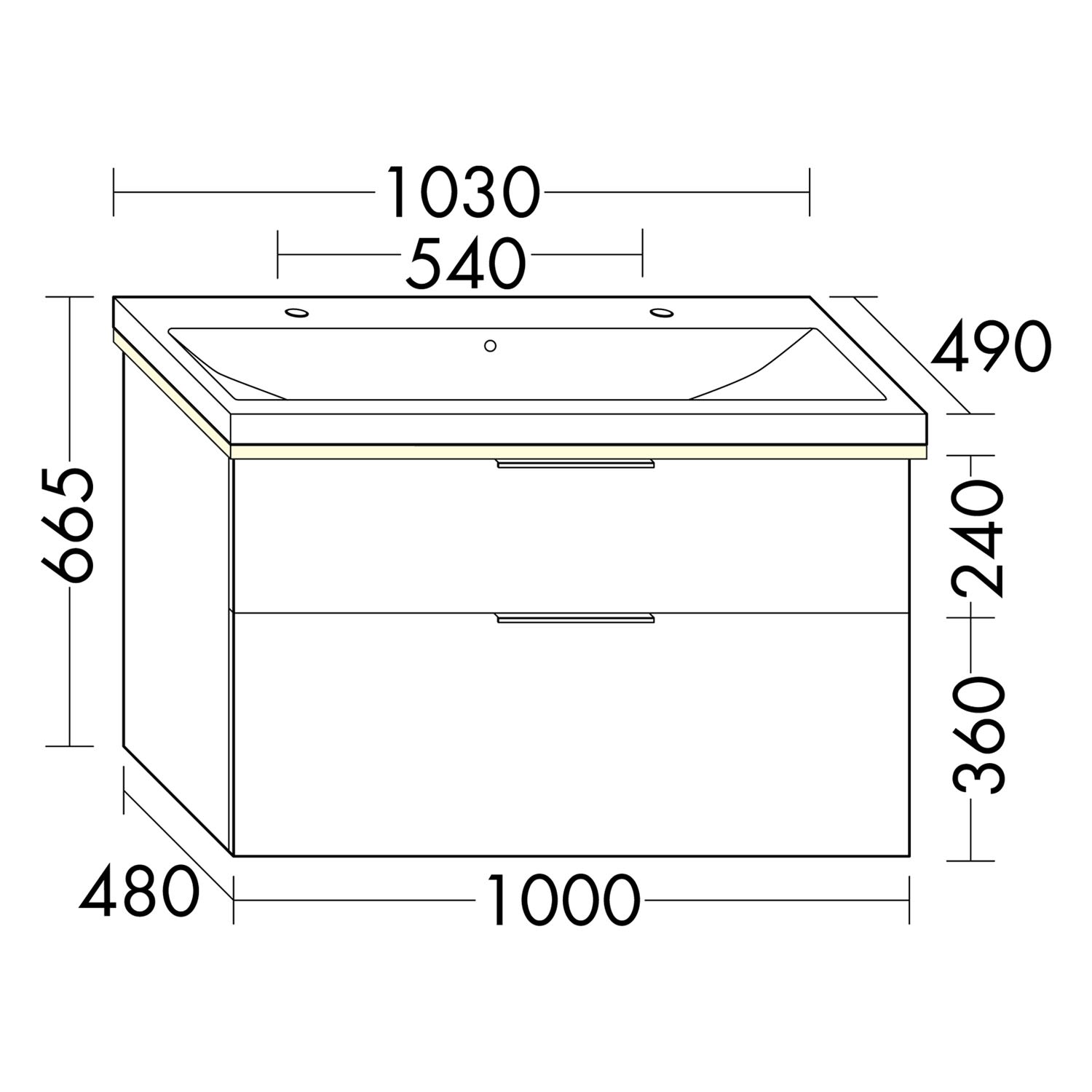 burgbad Eqio Waschtischkombination mit Keramik-Waschtisch mit LED-Beleuchtung, 103 cm, mit Stangengriff G0234