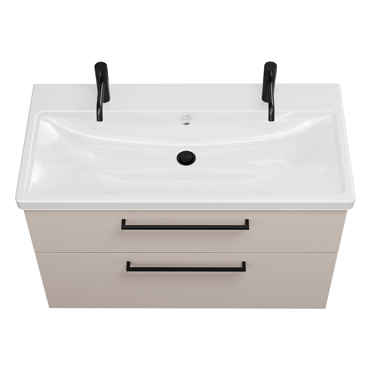 - 1 Schublade oben, 35 cm tief, mit Siphonausschnitt und Inneneinteilung