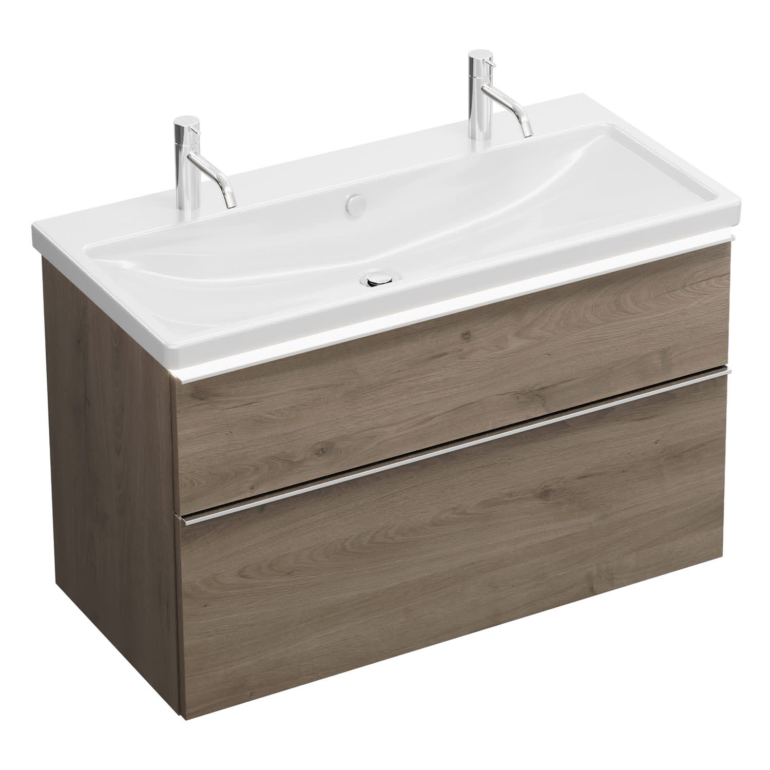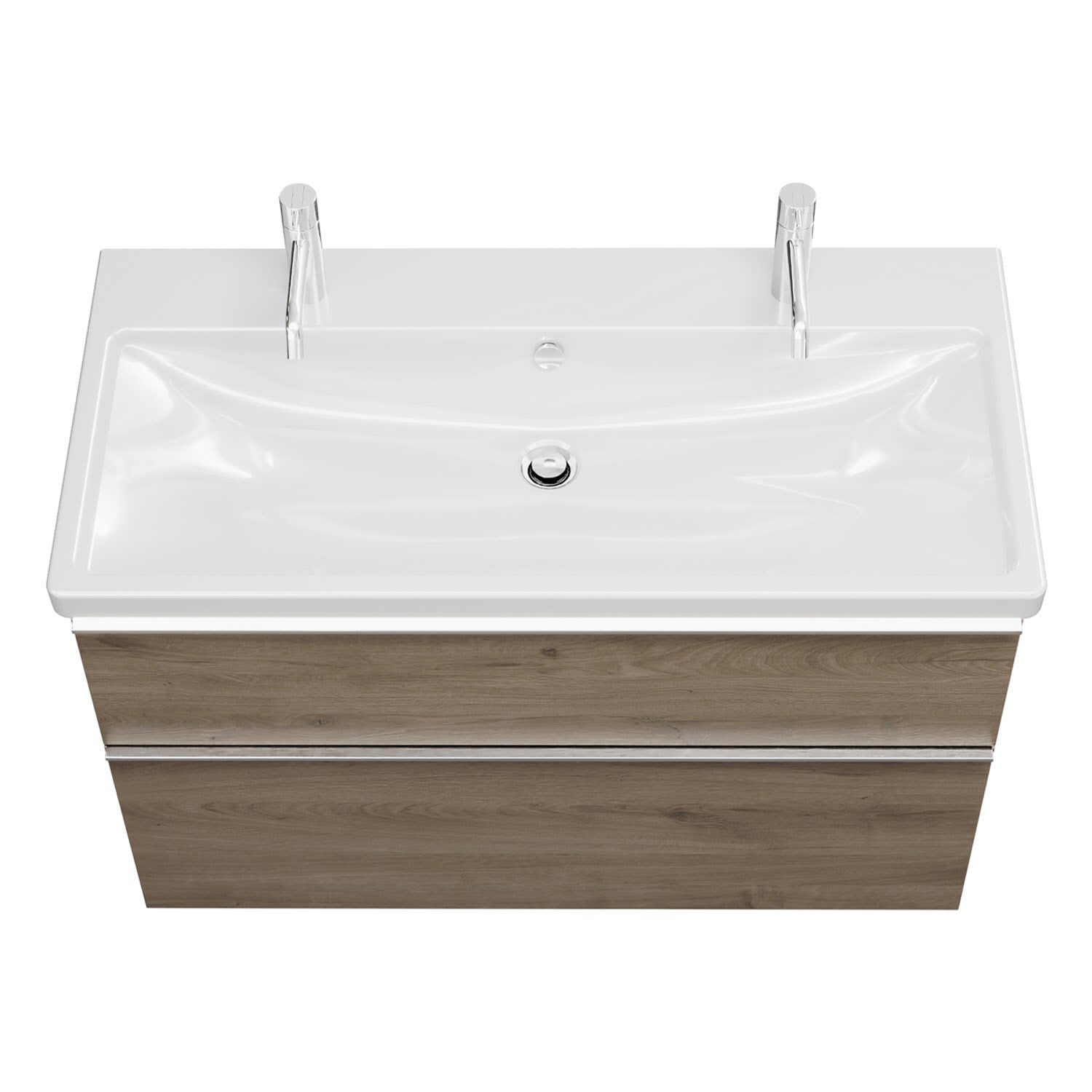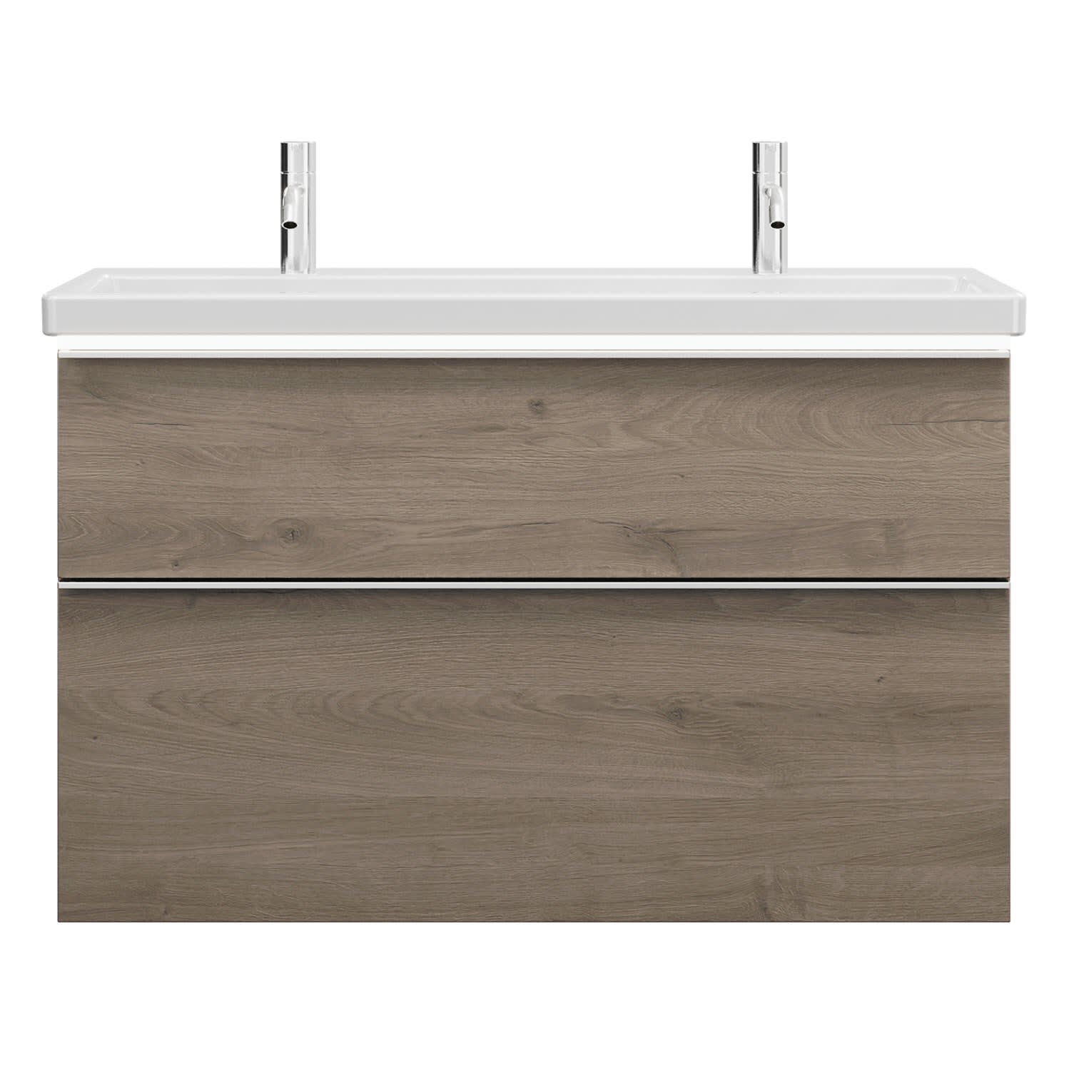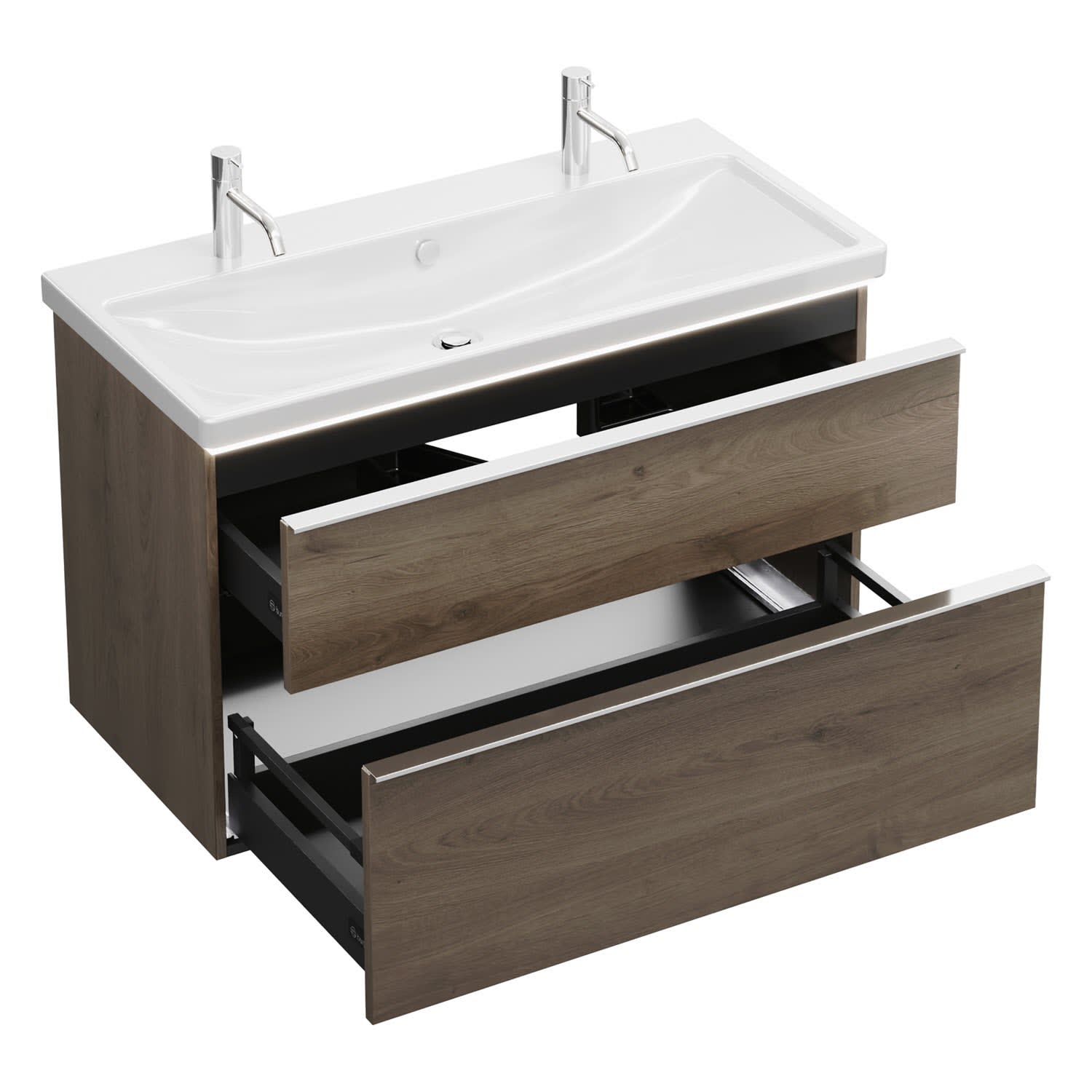 burgbad Eqio Waschtischkombination mit Keramik-Waschtisch mit LED-Beleuchtung, 103 cm, mit Griffleiste G0251