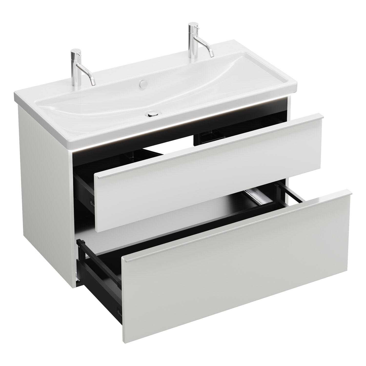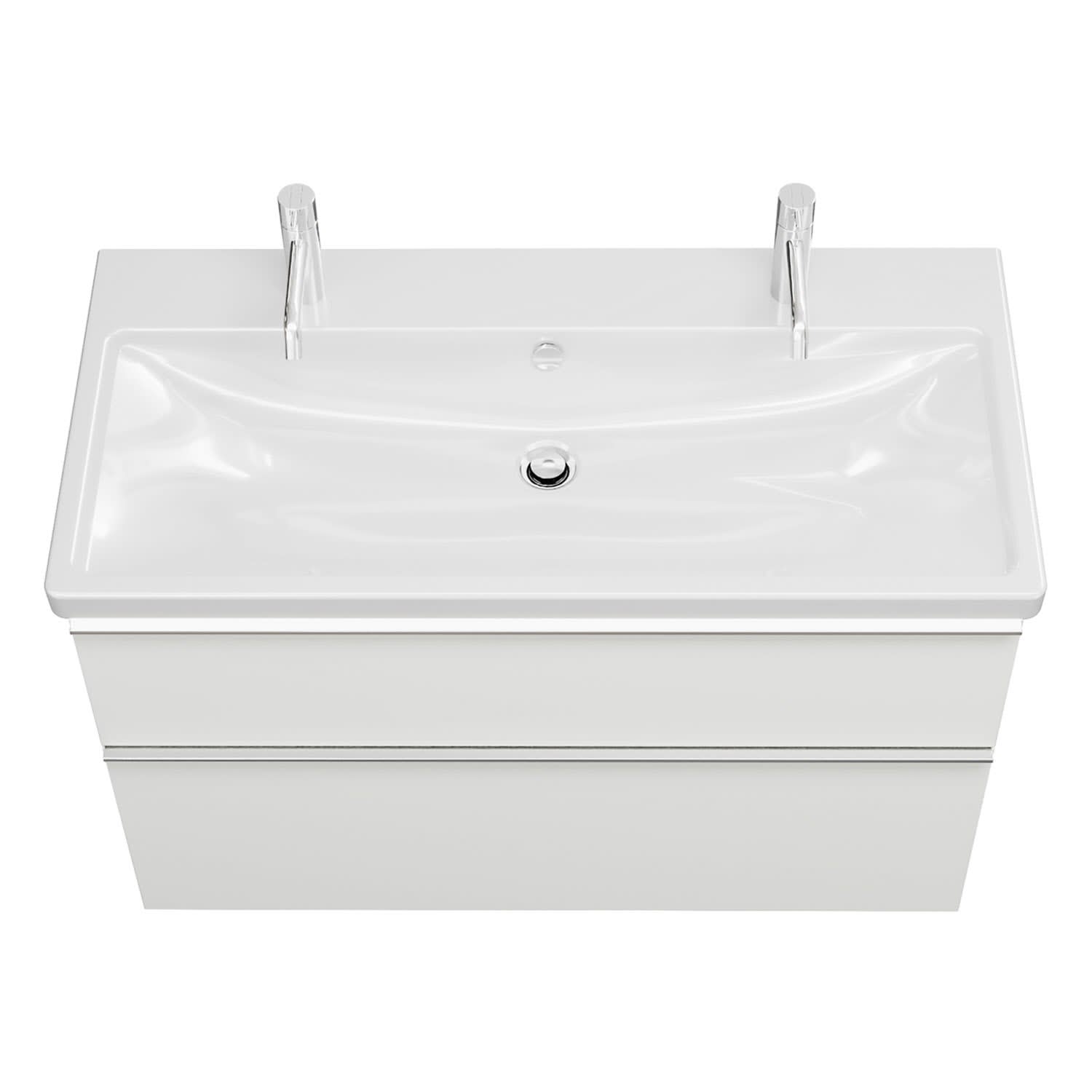burgbad Eqio Waschtischkombination mit Keramik-Waschtisch mit LED-Beleuchtung, 103 cm, mit Griffleiste G0251