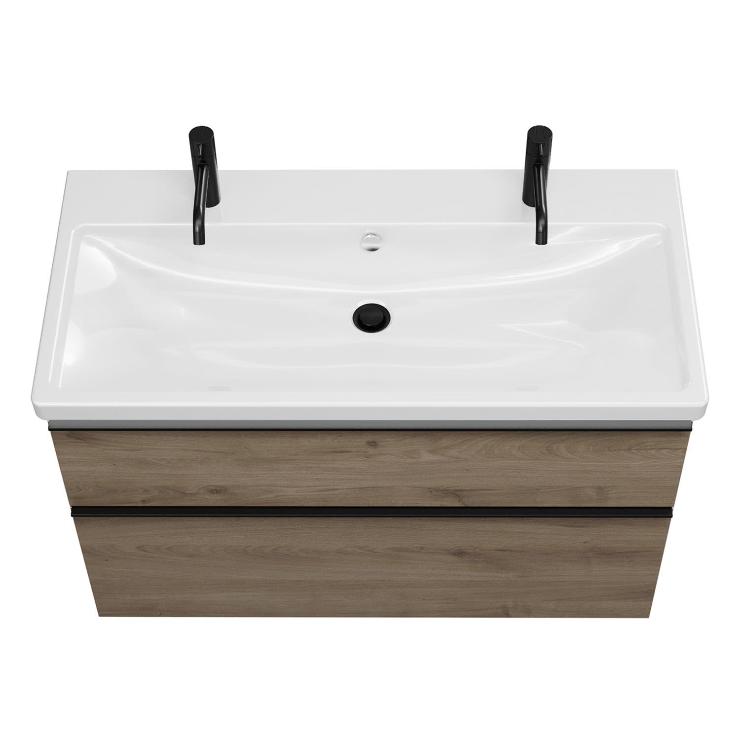 burgbad Eqio Waschtischkombination mit Keramik-Waschtisch mit LED-Beleuchtung, 103 cm, mit Griffleiste G0252