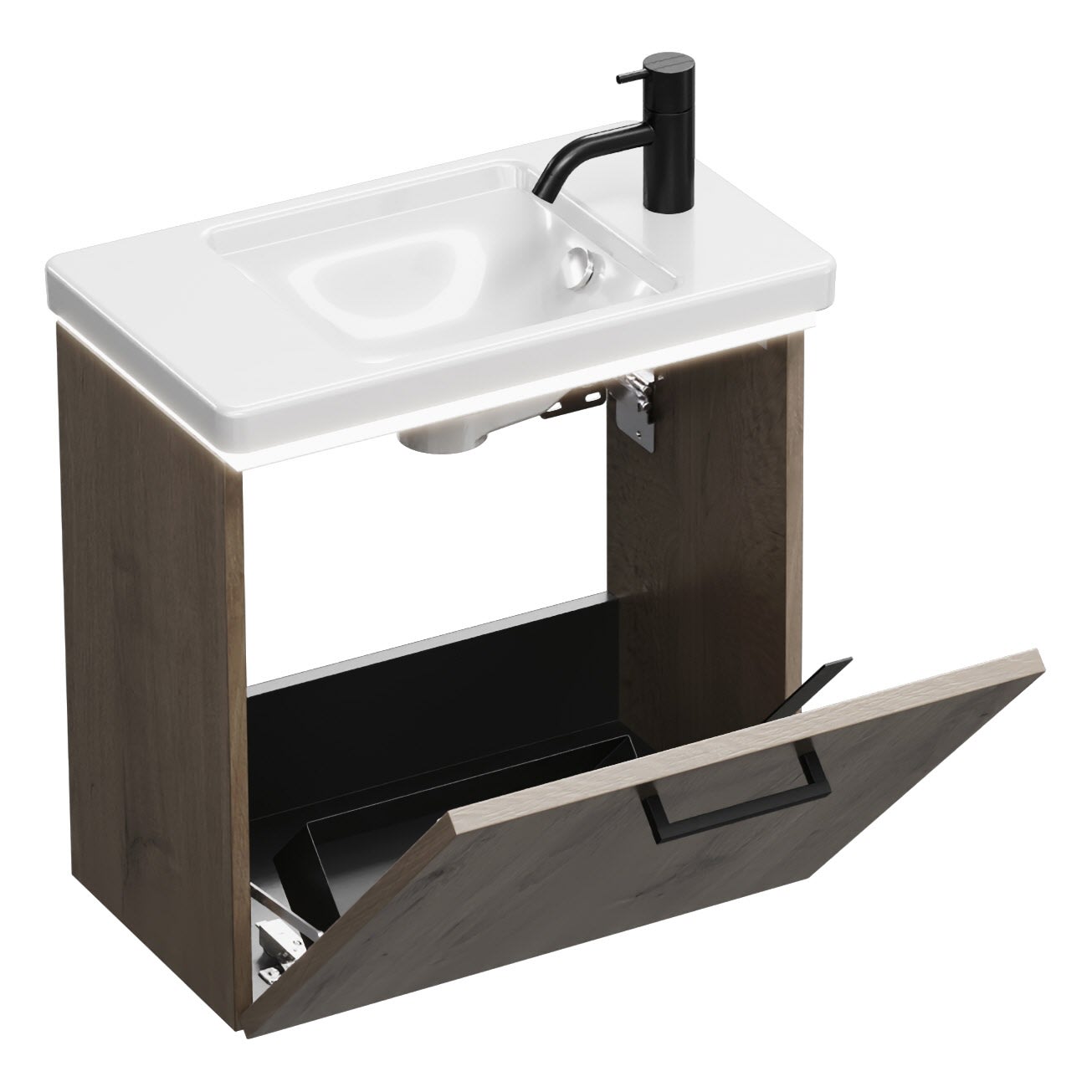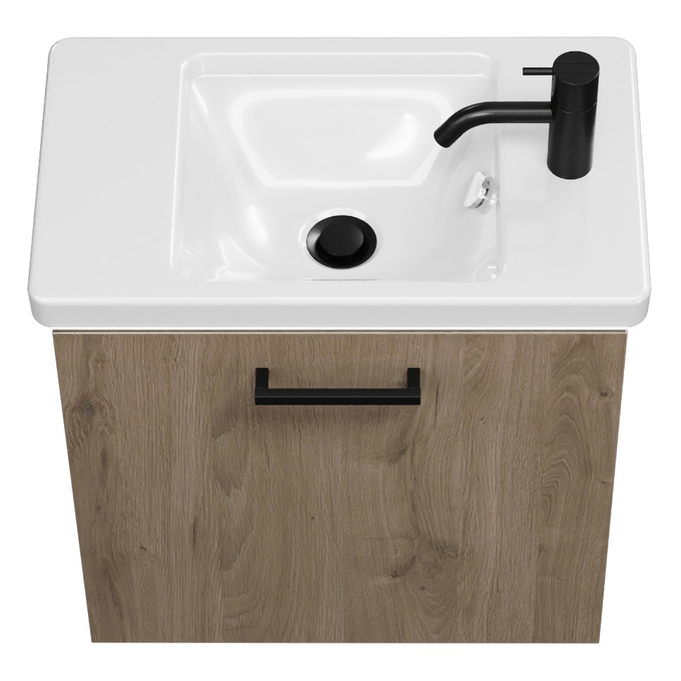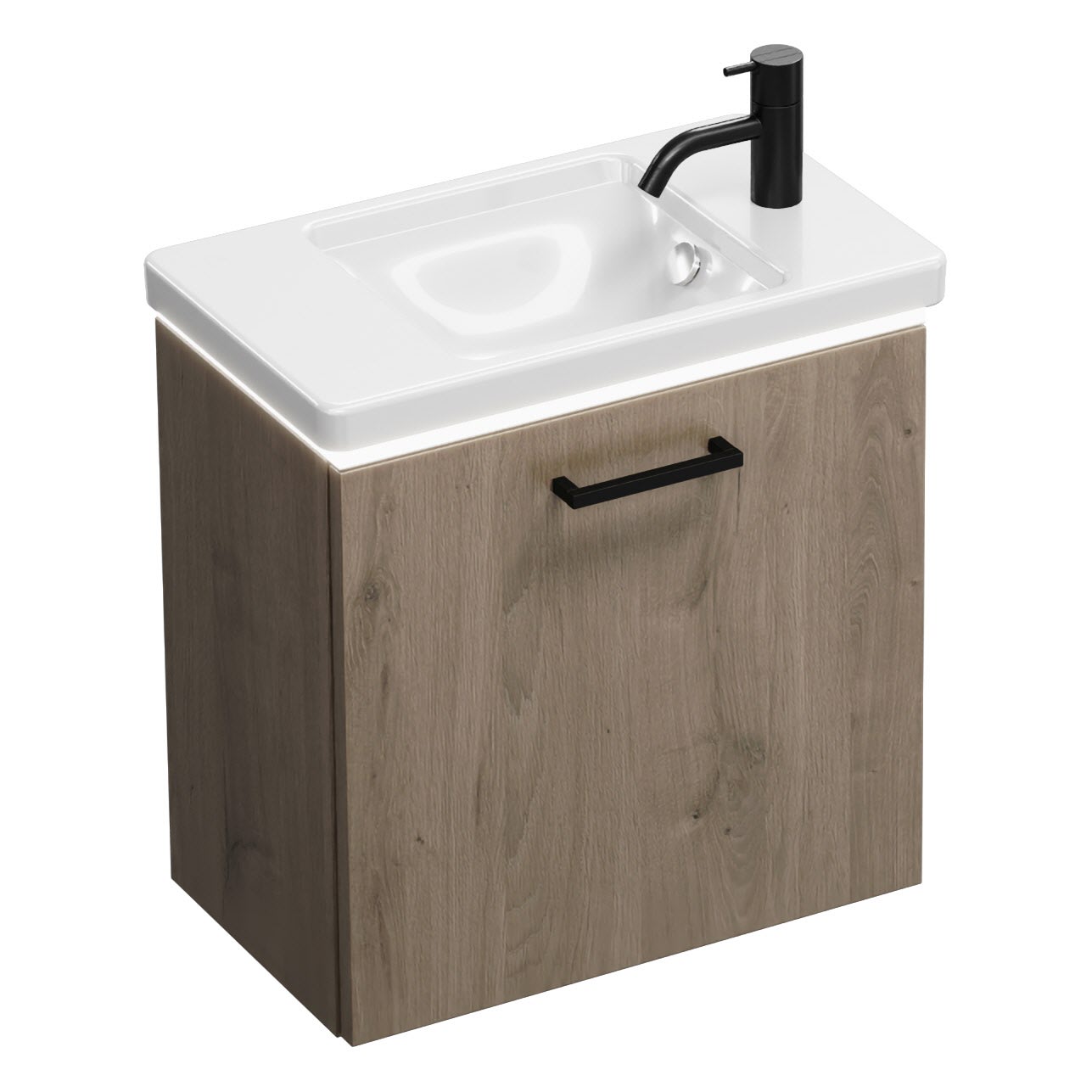 burgbad Eqio Waschtischkombination mit Keramik-Waschtisch mit LED-Beleuchtung, 53 cm, mit Stangengriff G0234