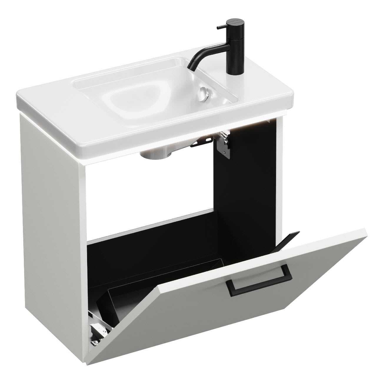 burgbad Eqio Waschtischkombination mit Keramik-Waschtisch mit LED-Beleuchtung, 53 cm, mit Stangengriff G0234