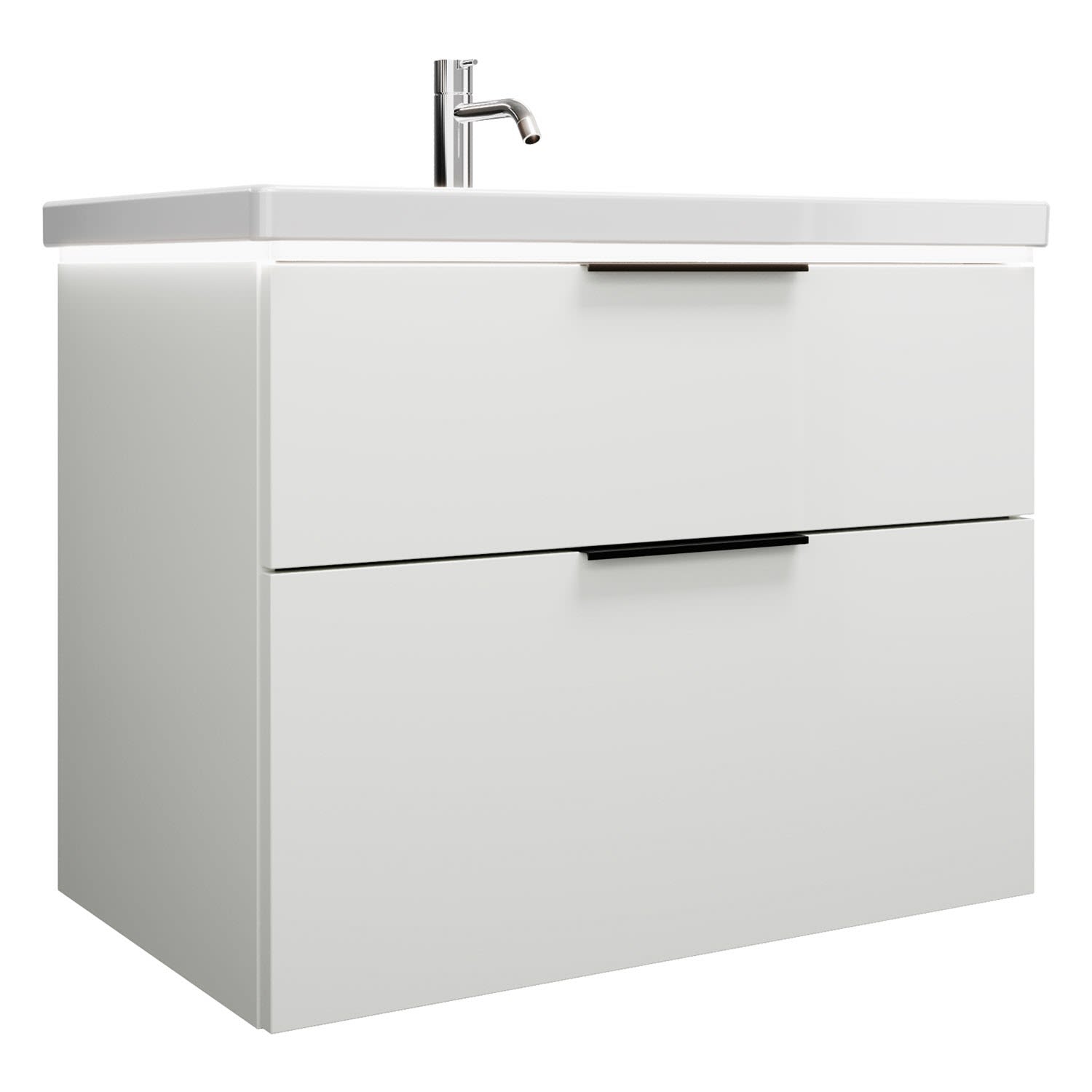 burgbad Eqio Waschtischkombination mit Keramik-Waschtisch mit LED-Beleuchtung, 83 cm, mit Griff G0200