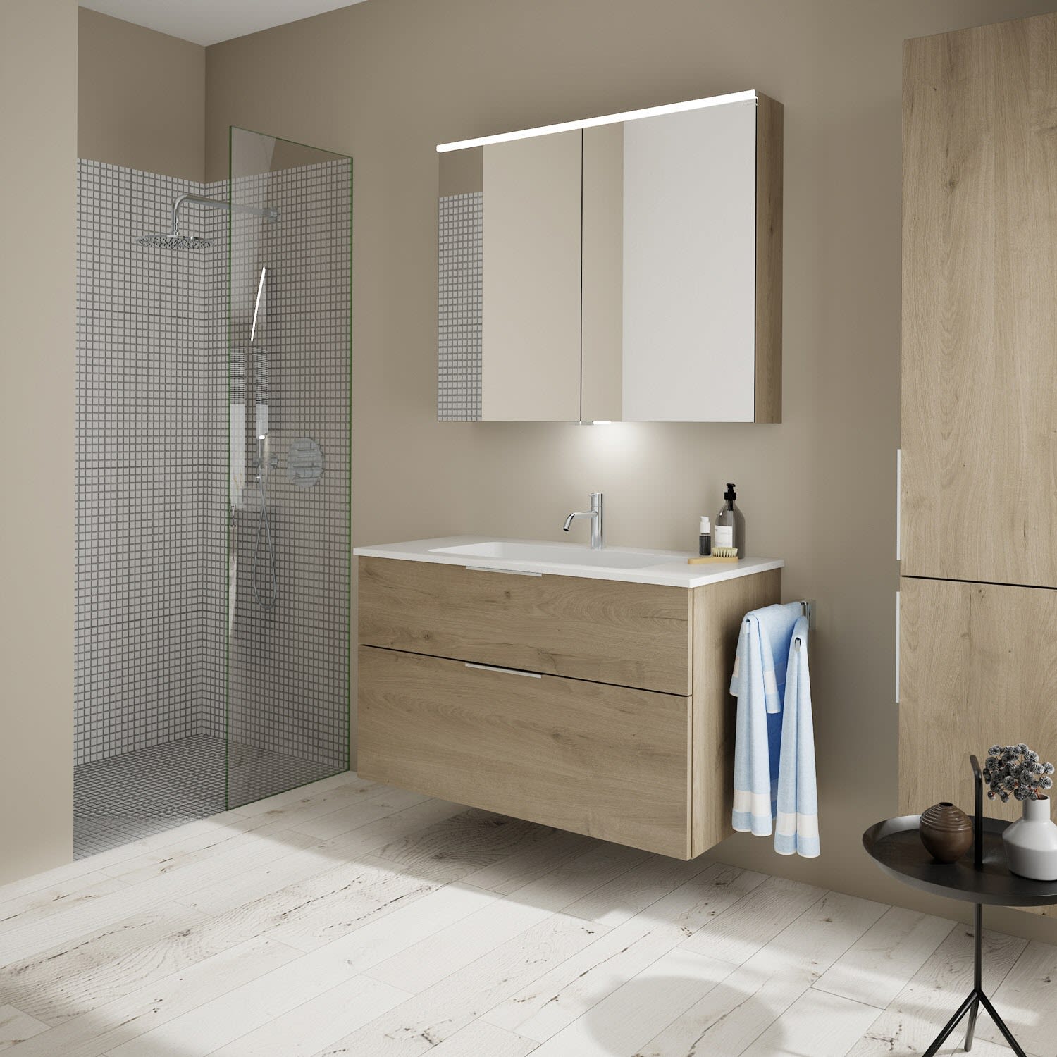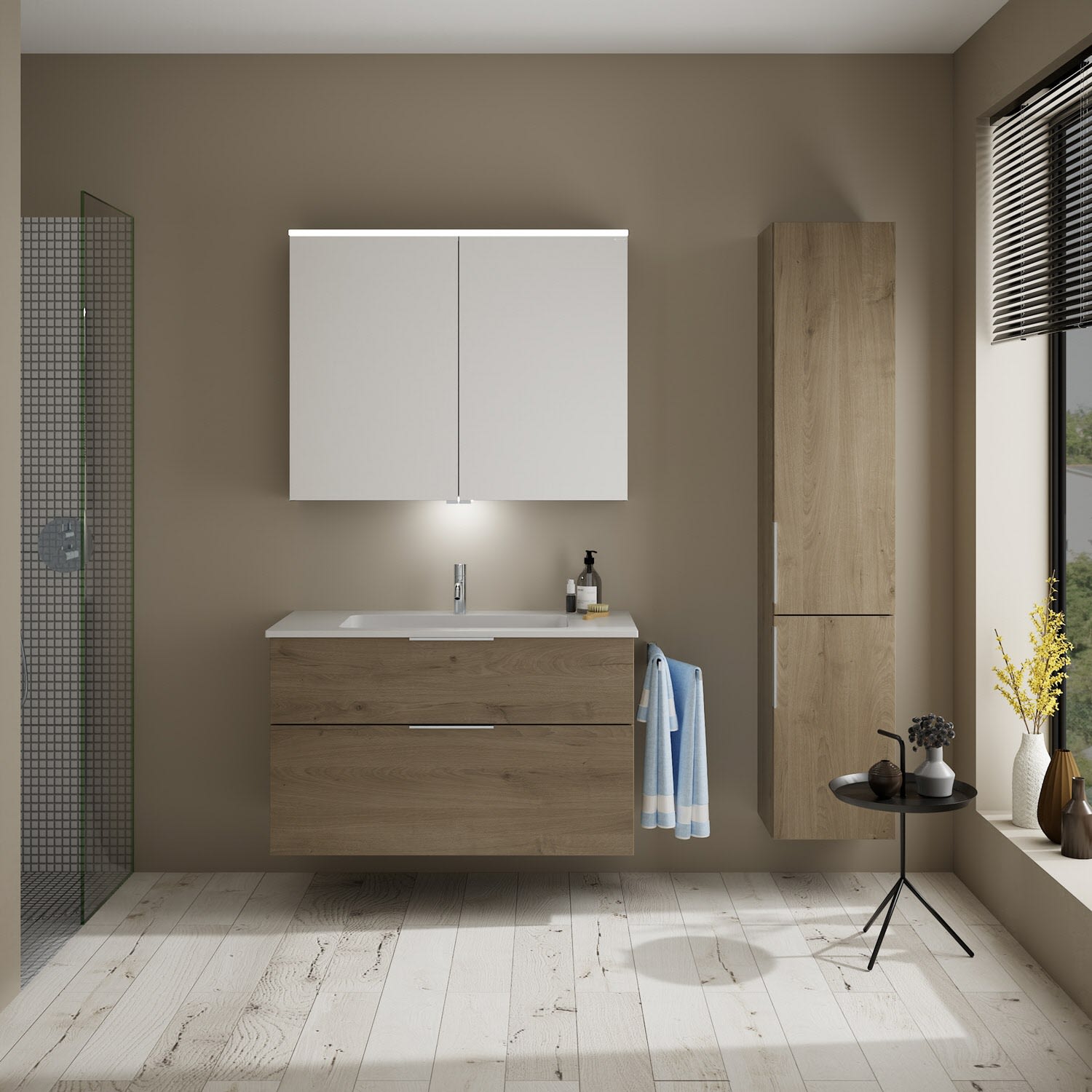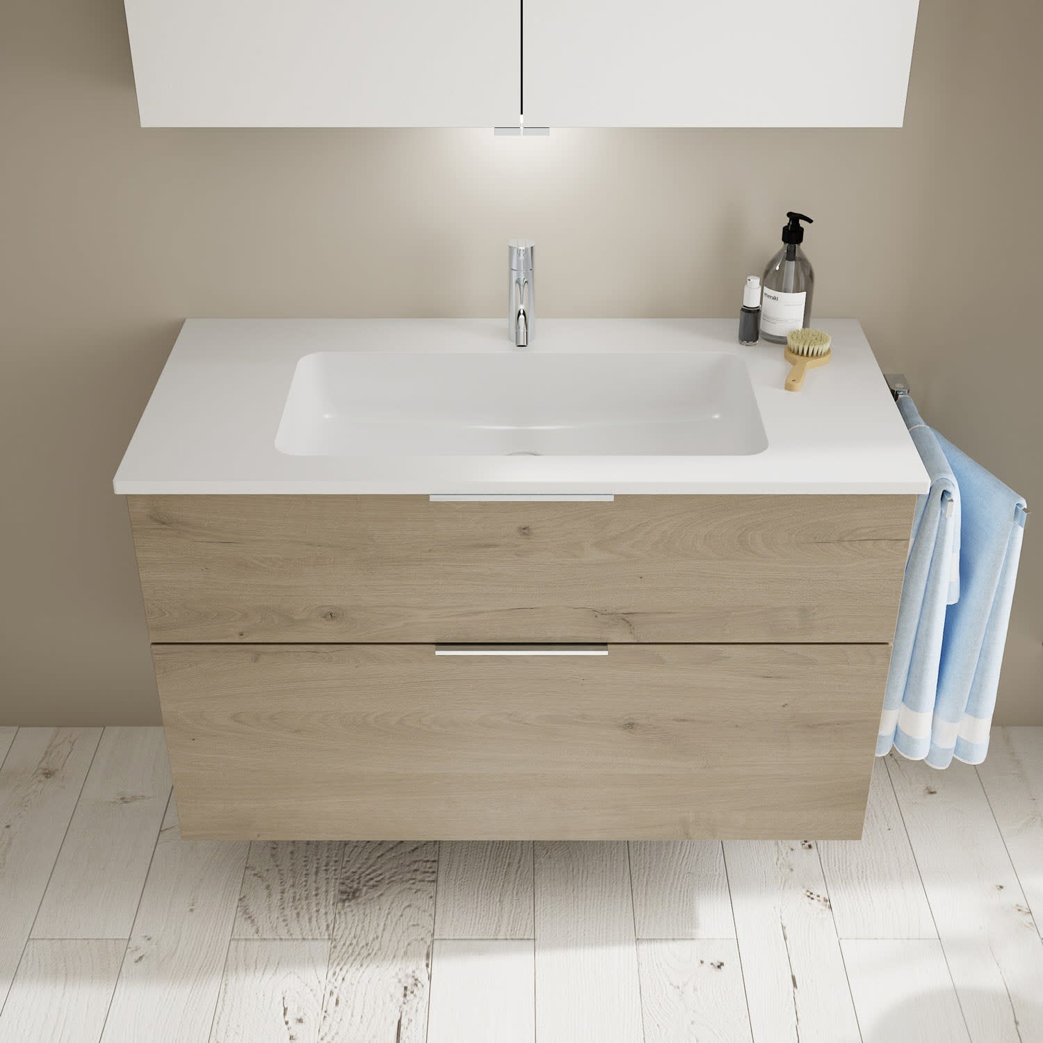 burgbad Eqio Waschtischkombination mit Mineralguss-Waschtisch, 102 cm, mit Griff G0146