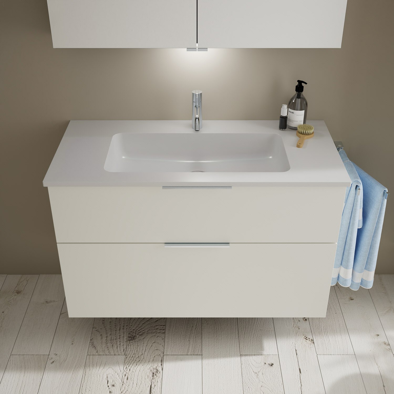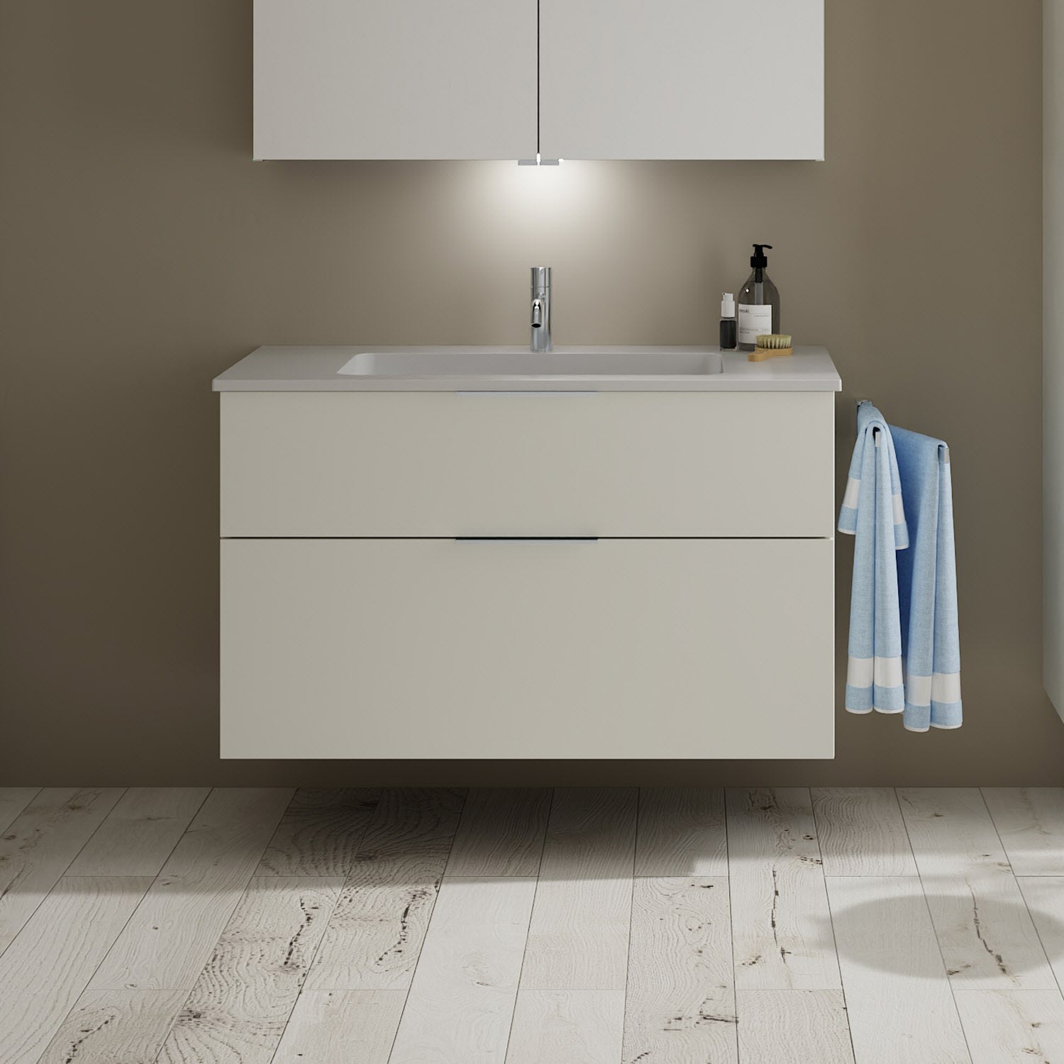 burgbad Eqio Waschtischkombination mit Mineralguss-Waschtisch, 102 cm, mit Griff G0146