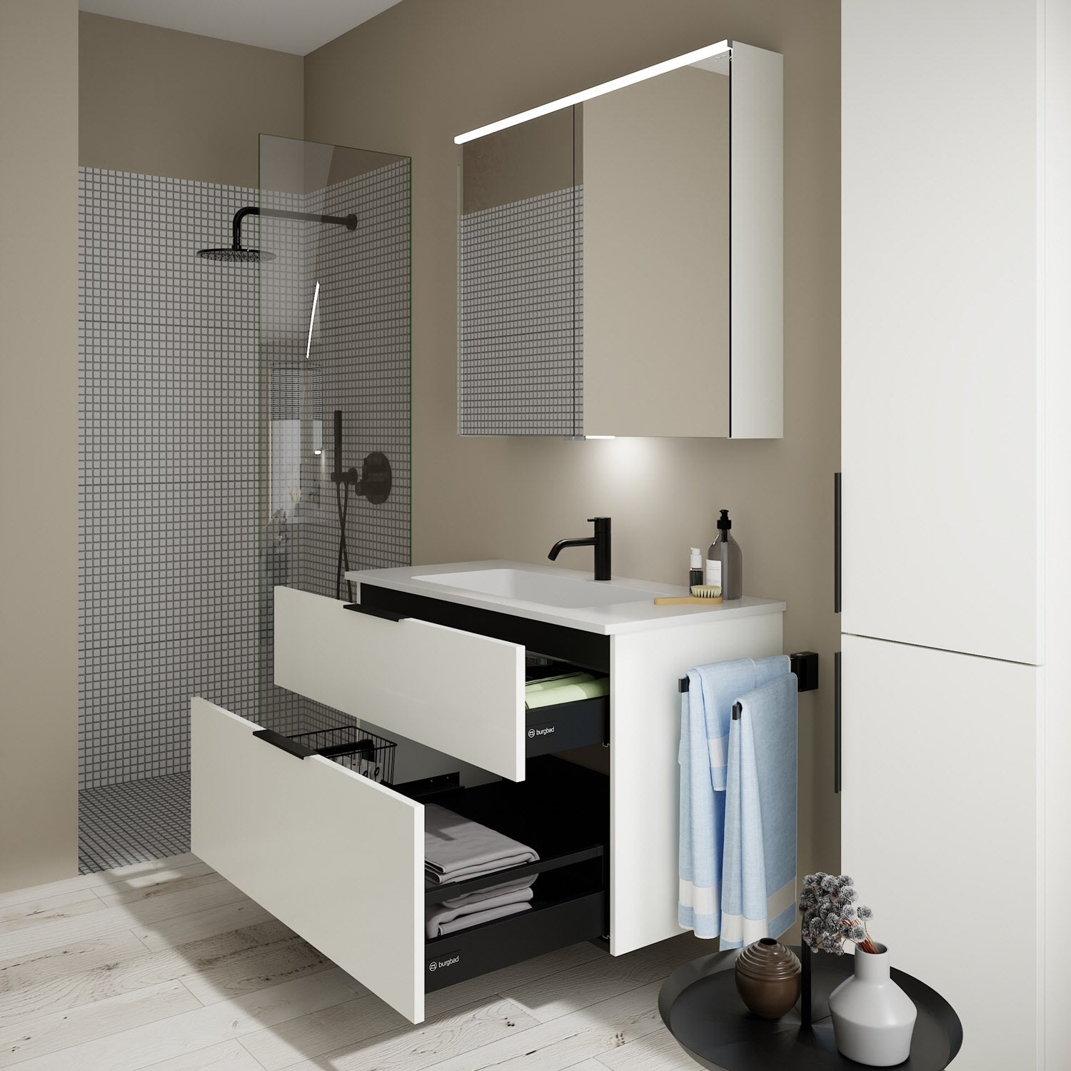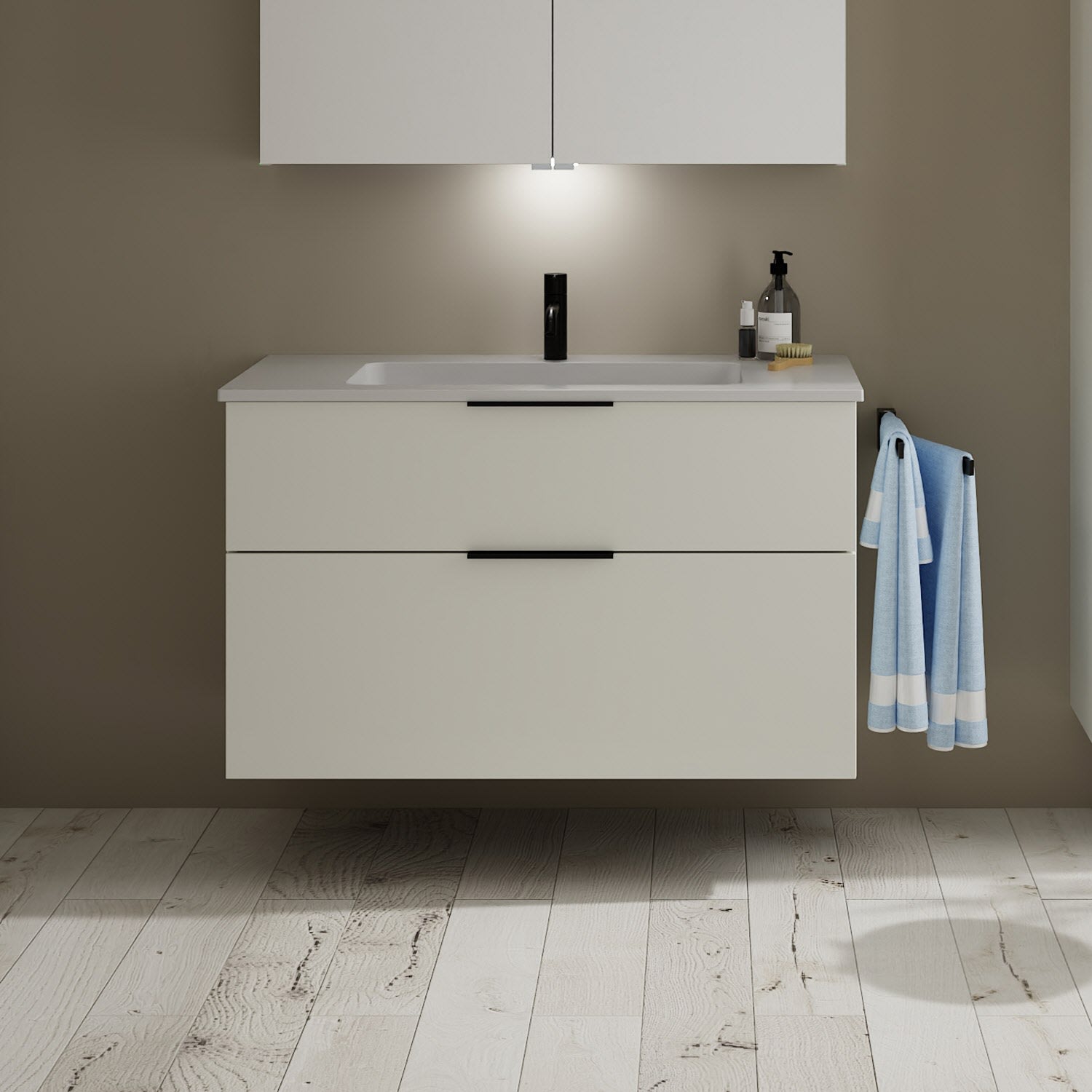 burgbad Eqio Waschtischkombination mit Mineralguss-Waschtisch, 102 cm, mit Griff G0200