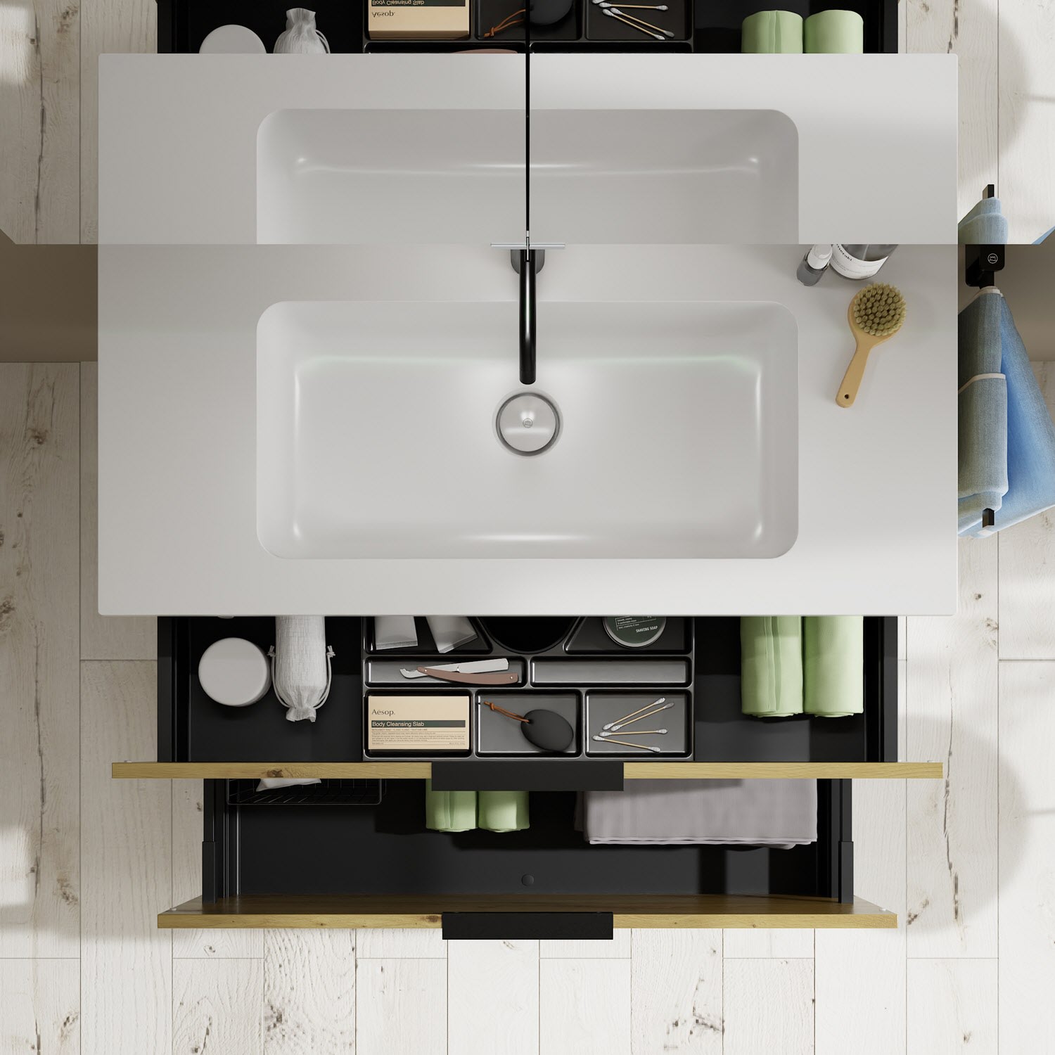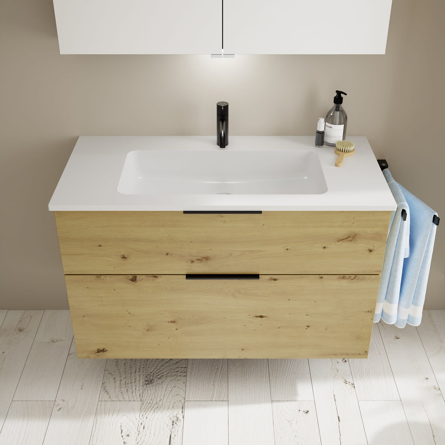 burgbad Eqio Waschtischkombination mit Mineralguss-Waschtisch, 102 cm, mit Griff G0200