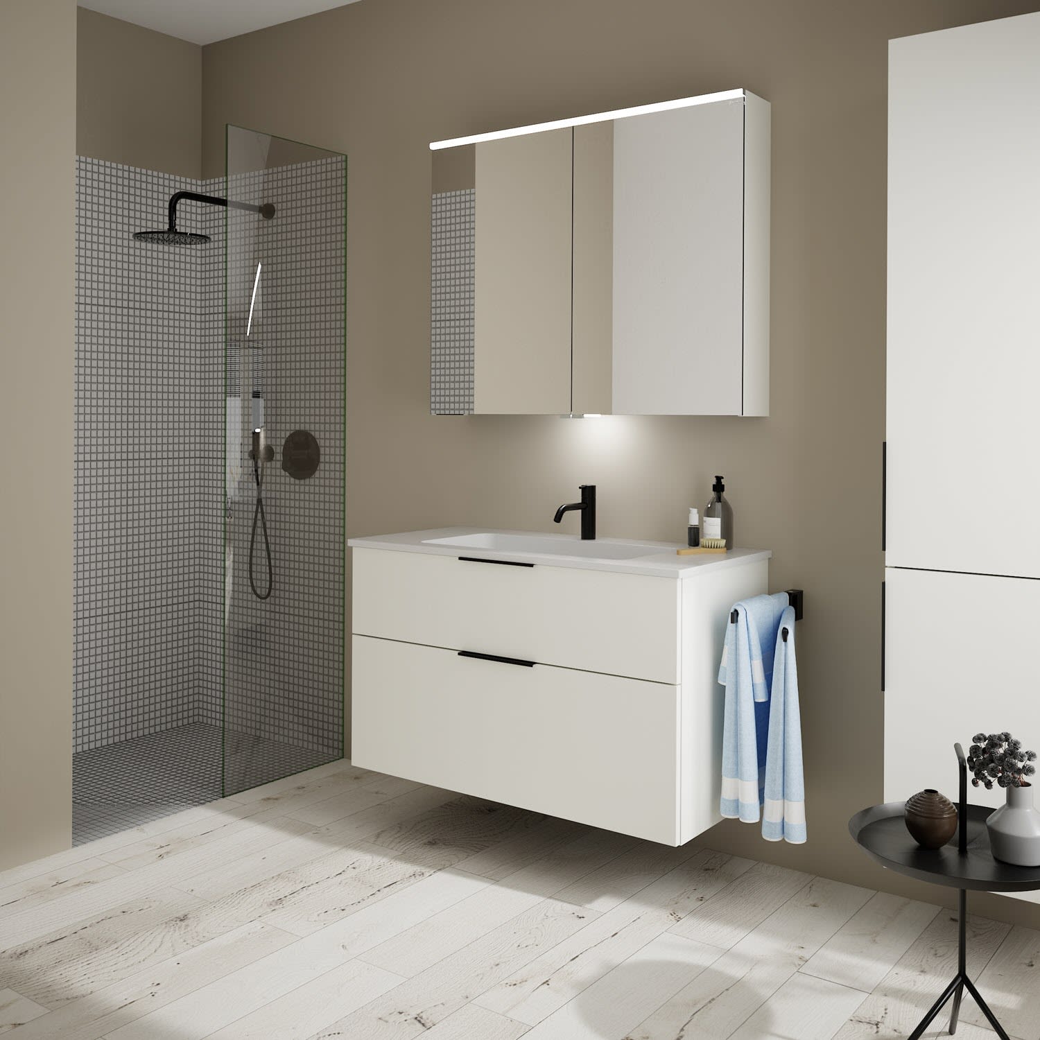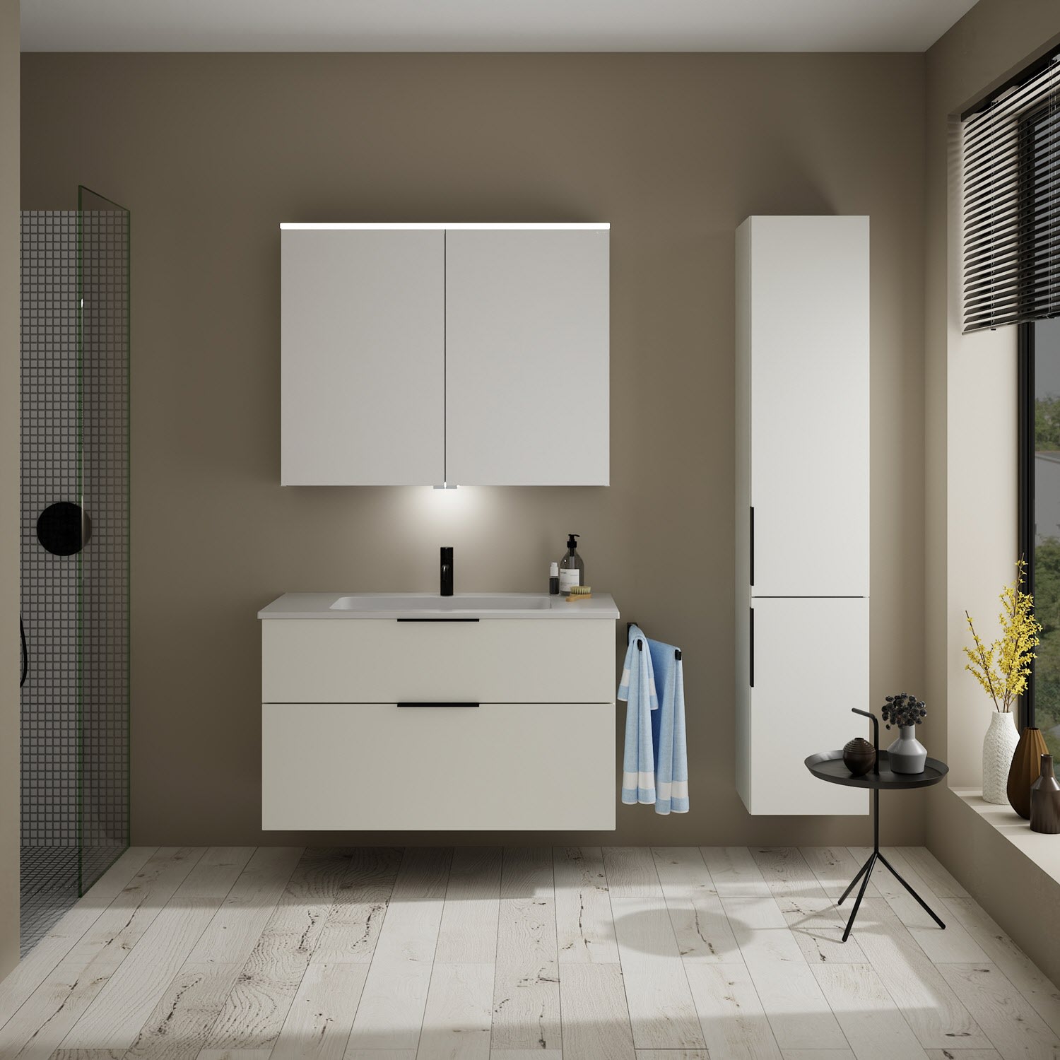 burgbad Eqio Waschtischkombination mit Mineralguss-Waschtisch, 102 cm, mit Griff G0200