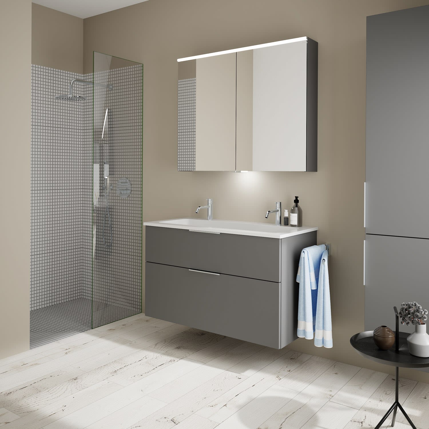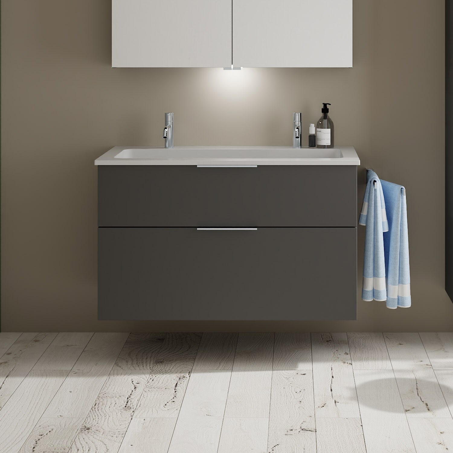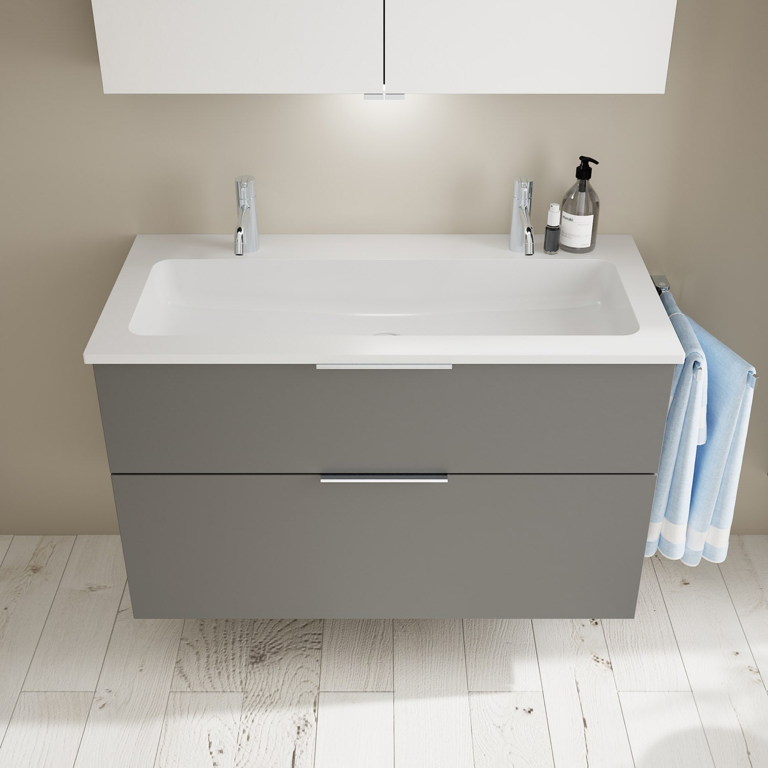 burgbad Eqio Waschtischkombination mit Mineralguss-Waschtisch, 102 cm, mit Griff G0146