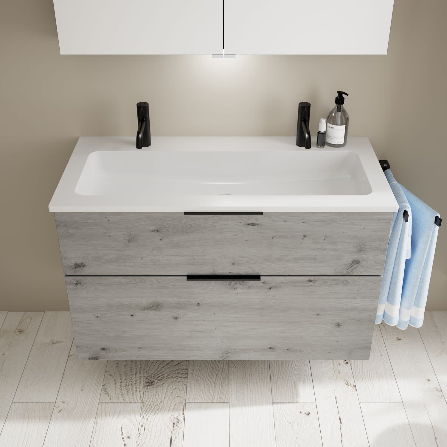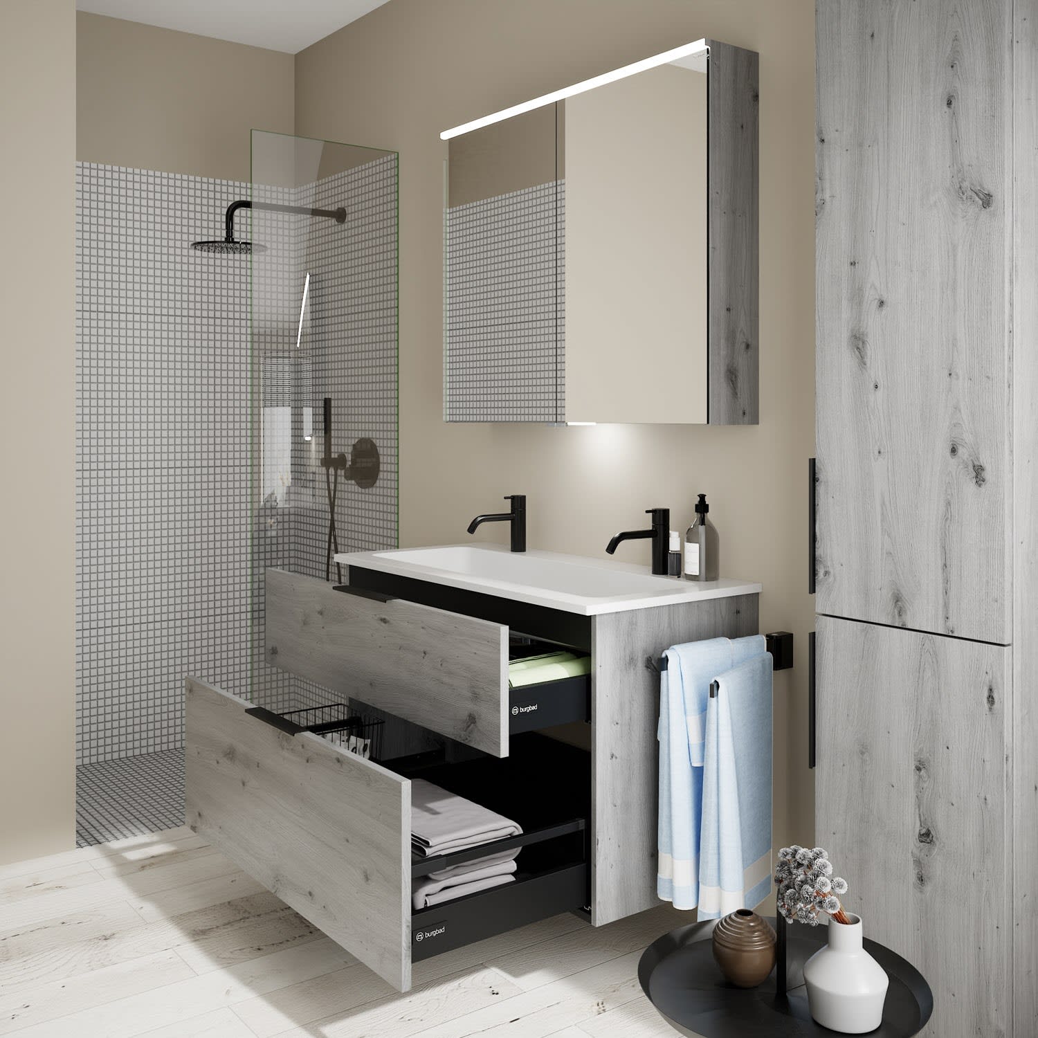 burgbad Eqio Waschtischkombination mit Mineralguss-Waschtisch, 102 cm, mit Griff G0200