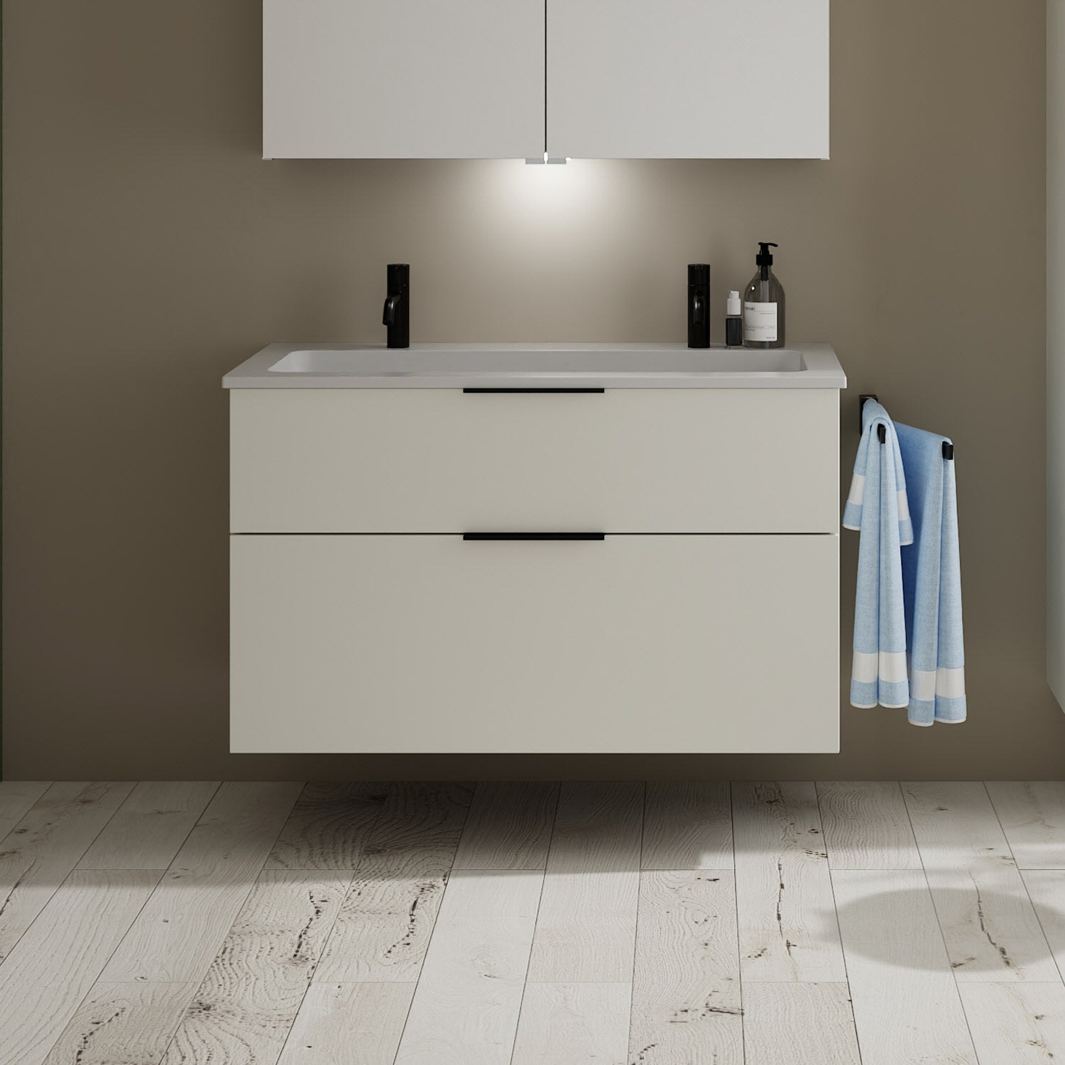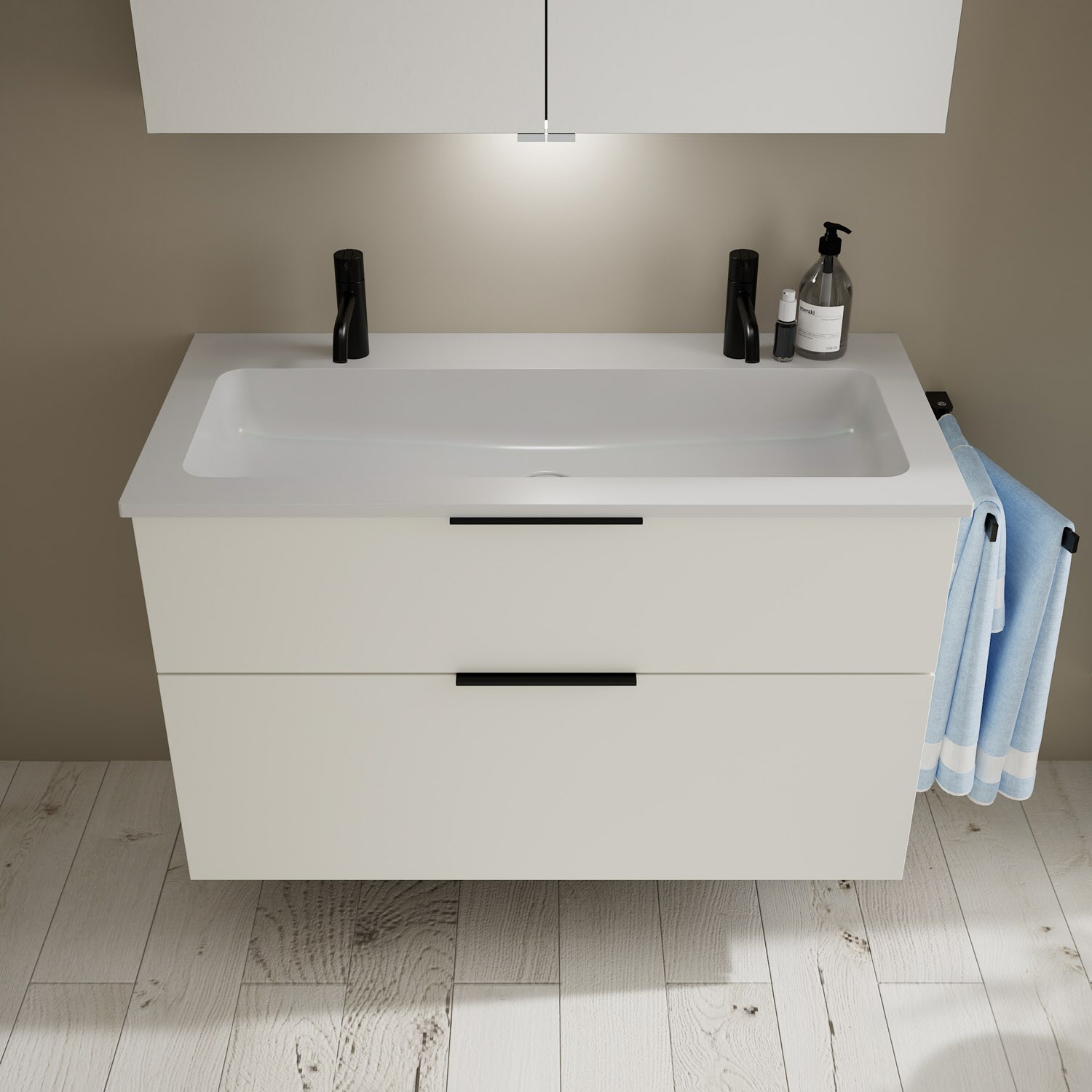 burgbad Eqio Waschtischkombination mit Mineralguss-Waschtisch, 102 cm, mit Griff G0200