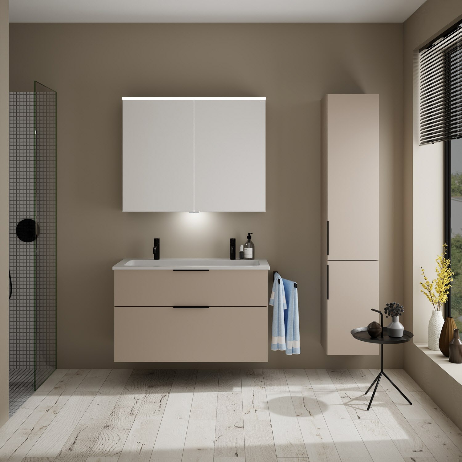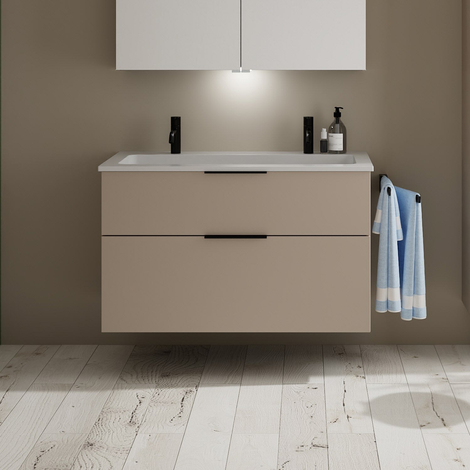 burgbad Eqio Waschtischkombination mit Mineralguss-Waschtisch, 102 cm, mit Griff G0200