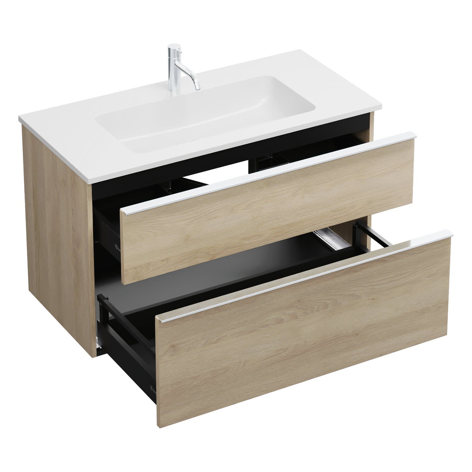 - 1 Schublade oben, 35 cm tief, mit Siphonausschnitt und Inneneinteilung