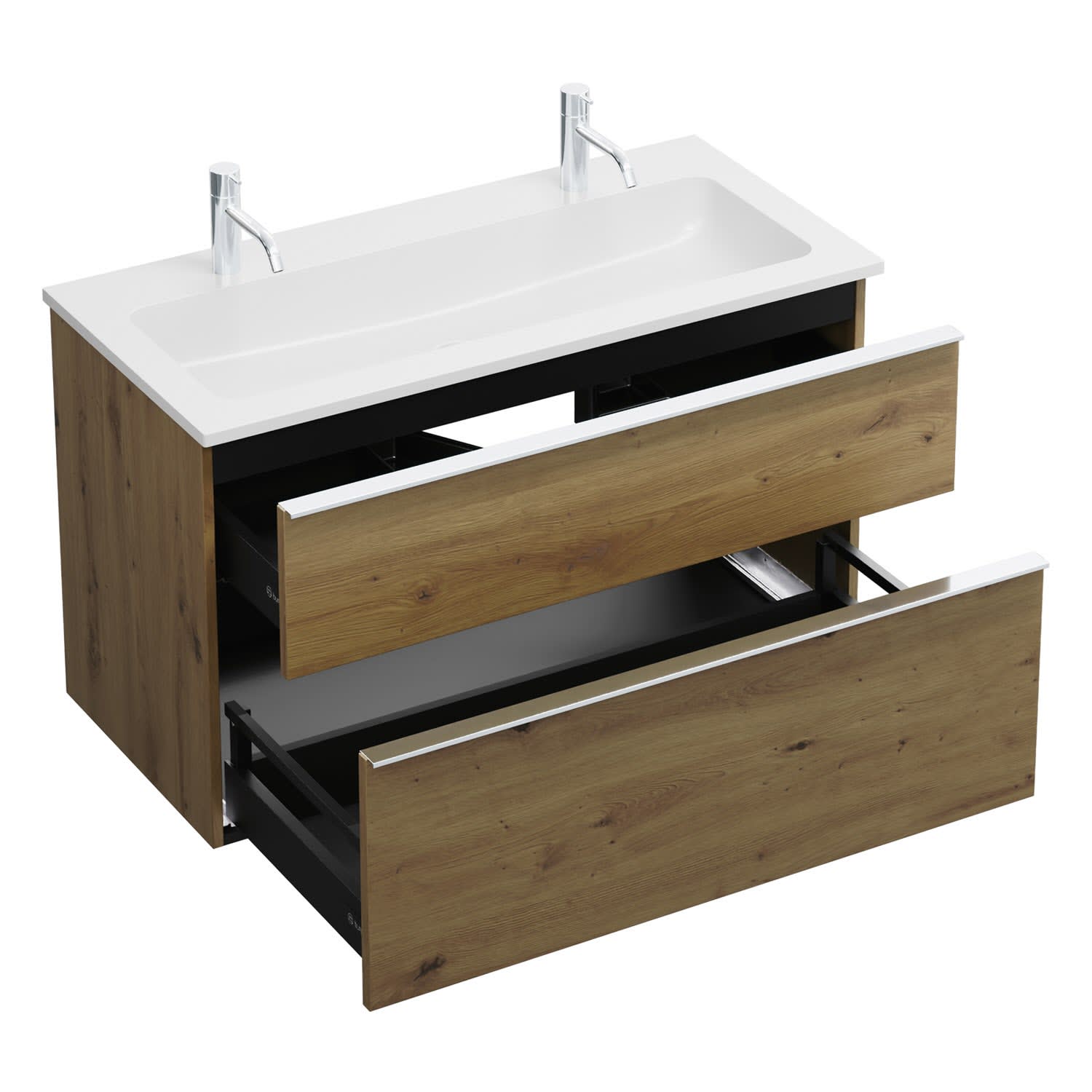 burgbad Eqio Waschtischkombination mit Mineralguss-Waschtisch, 102 cm, mit Griffleiste G0251