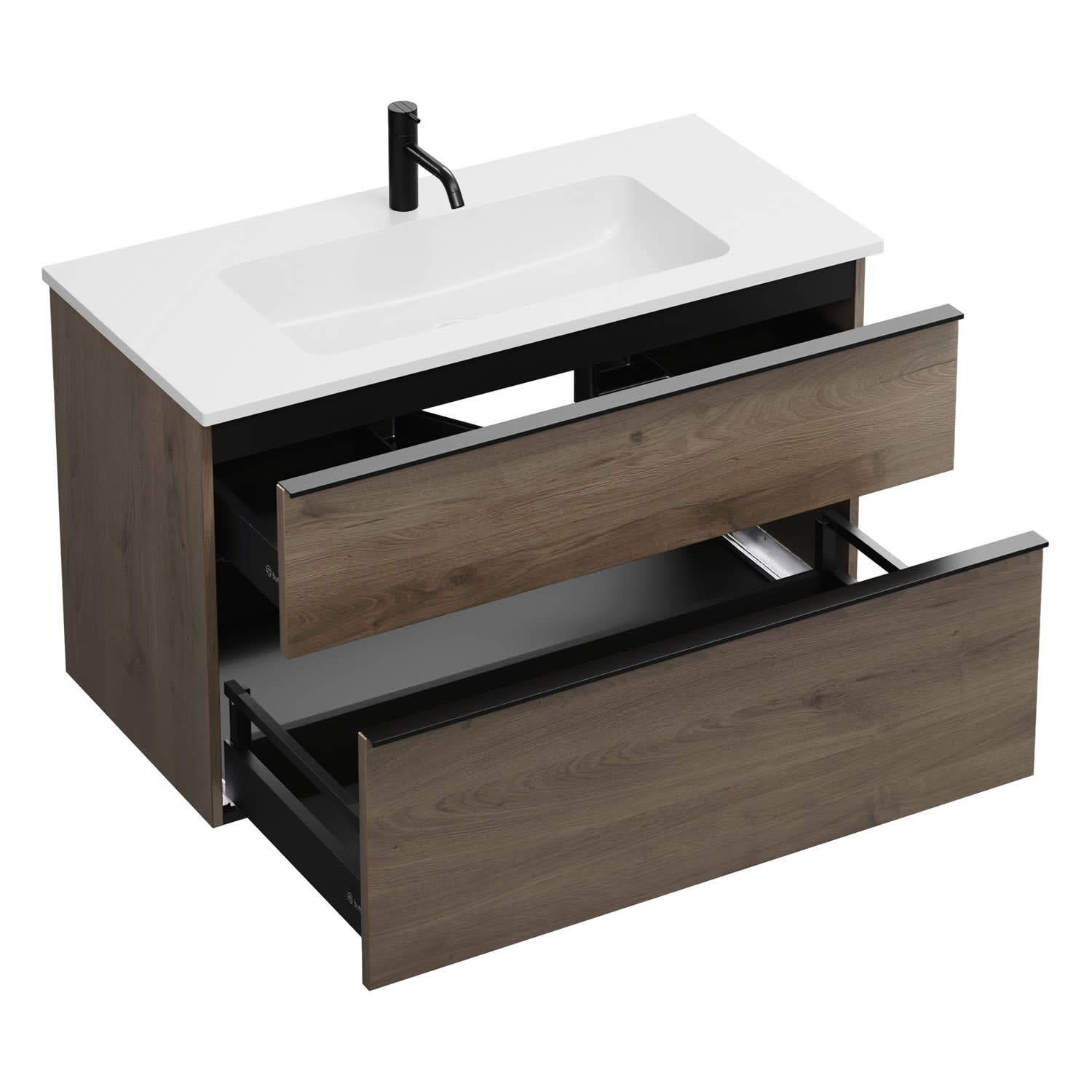 - 1 Schublade oben, 35 cm tief, mit Siphonausschnitt und Inneneinteilung