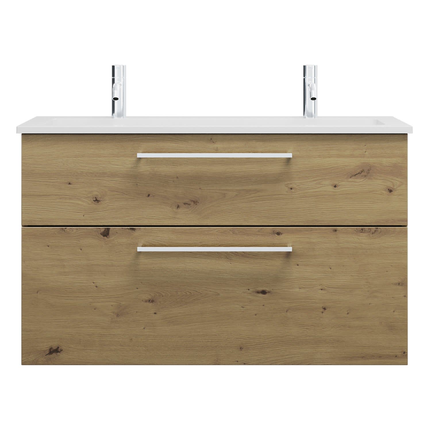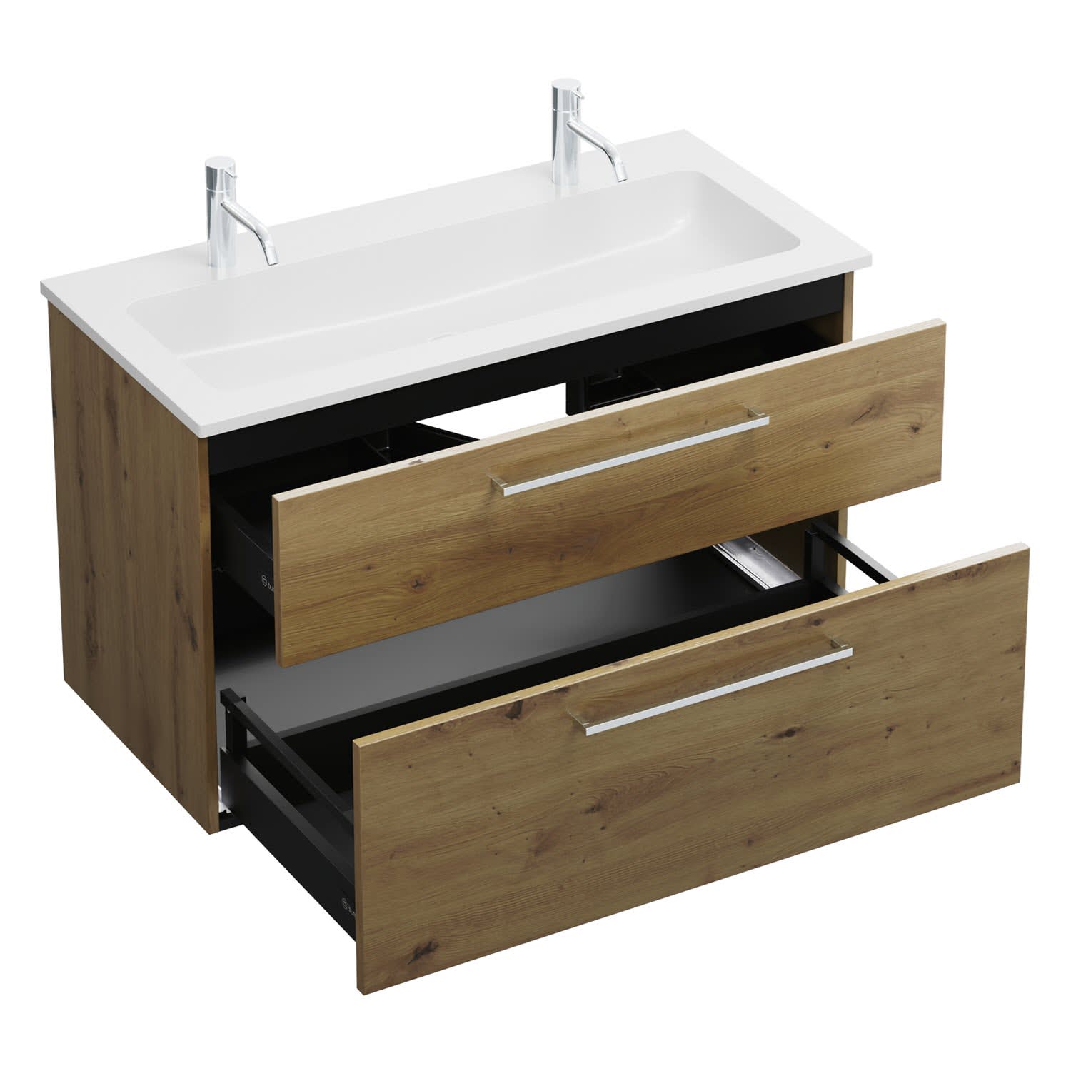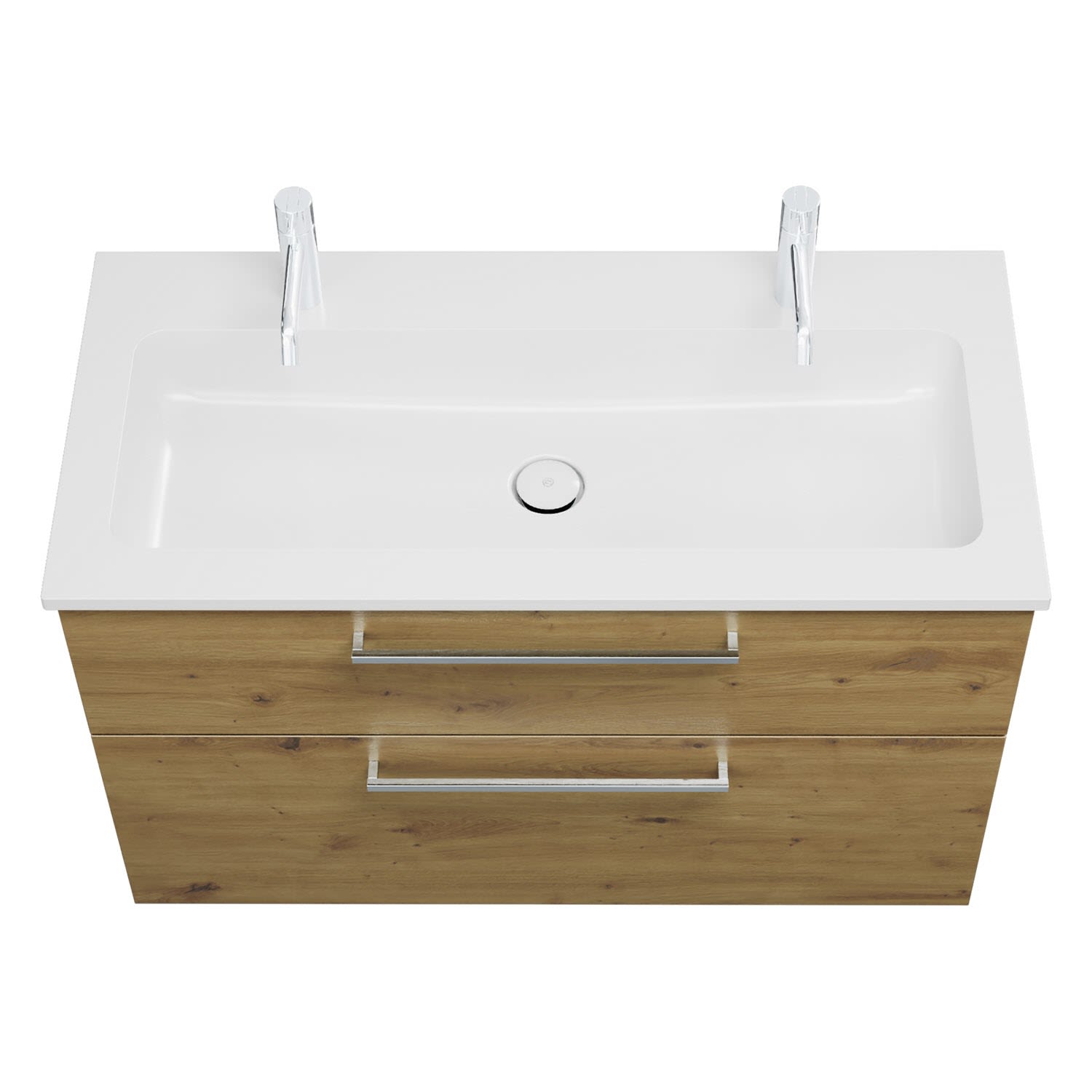 burgbad Eqio Waschtischkombination mit Mineralguss-Waschtisch, 102 cm, mit Stangengriff P95