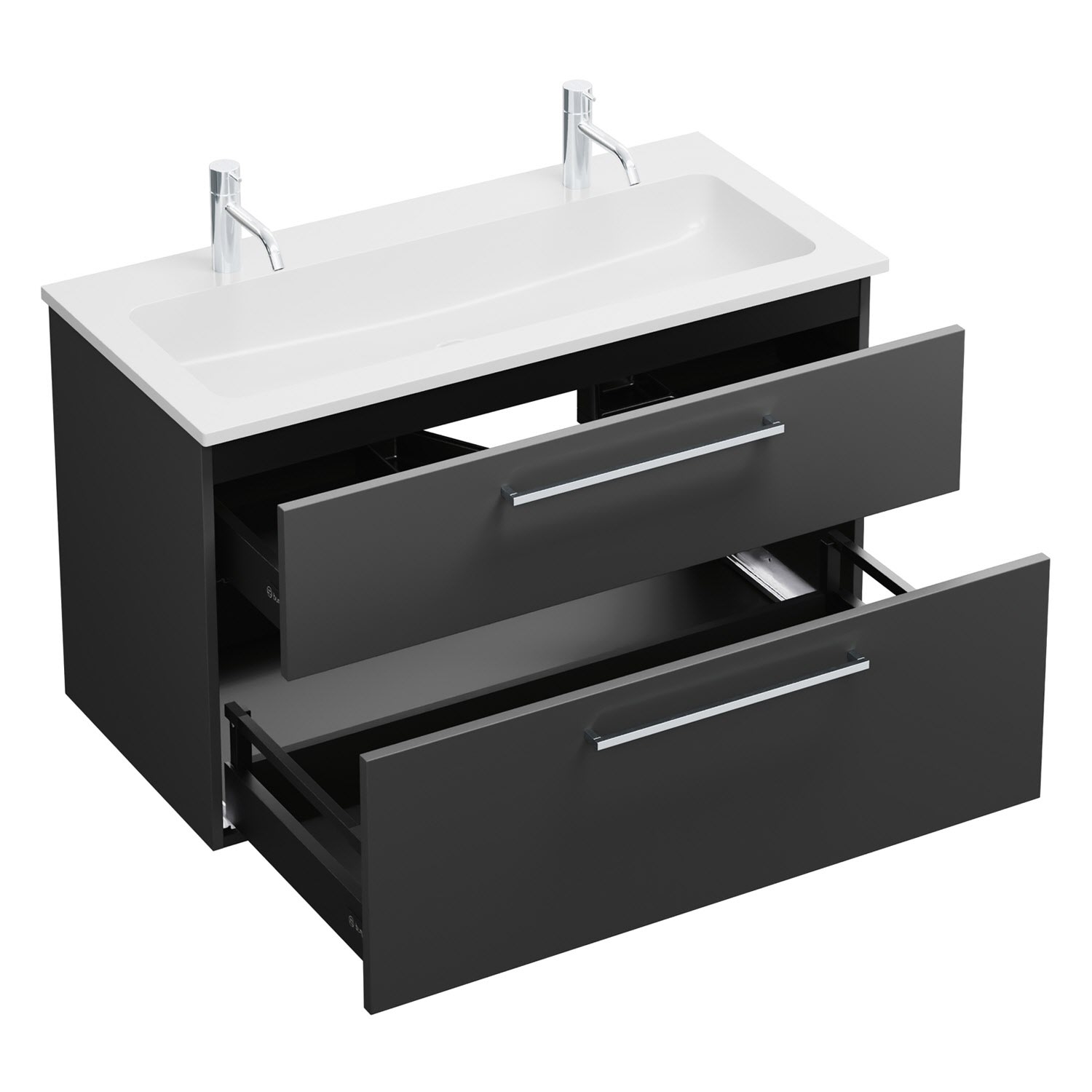 burgbad Eqio Waschtischkombination mit Mineralguss-Waschtisch, 102 cm, mit Stangengriff P95