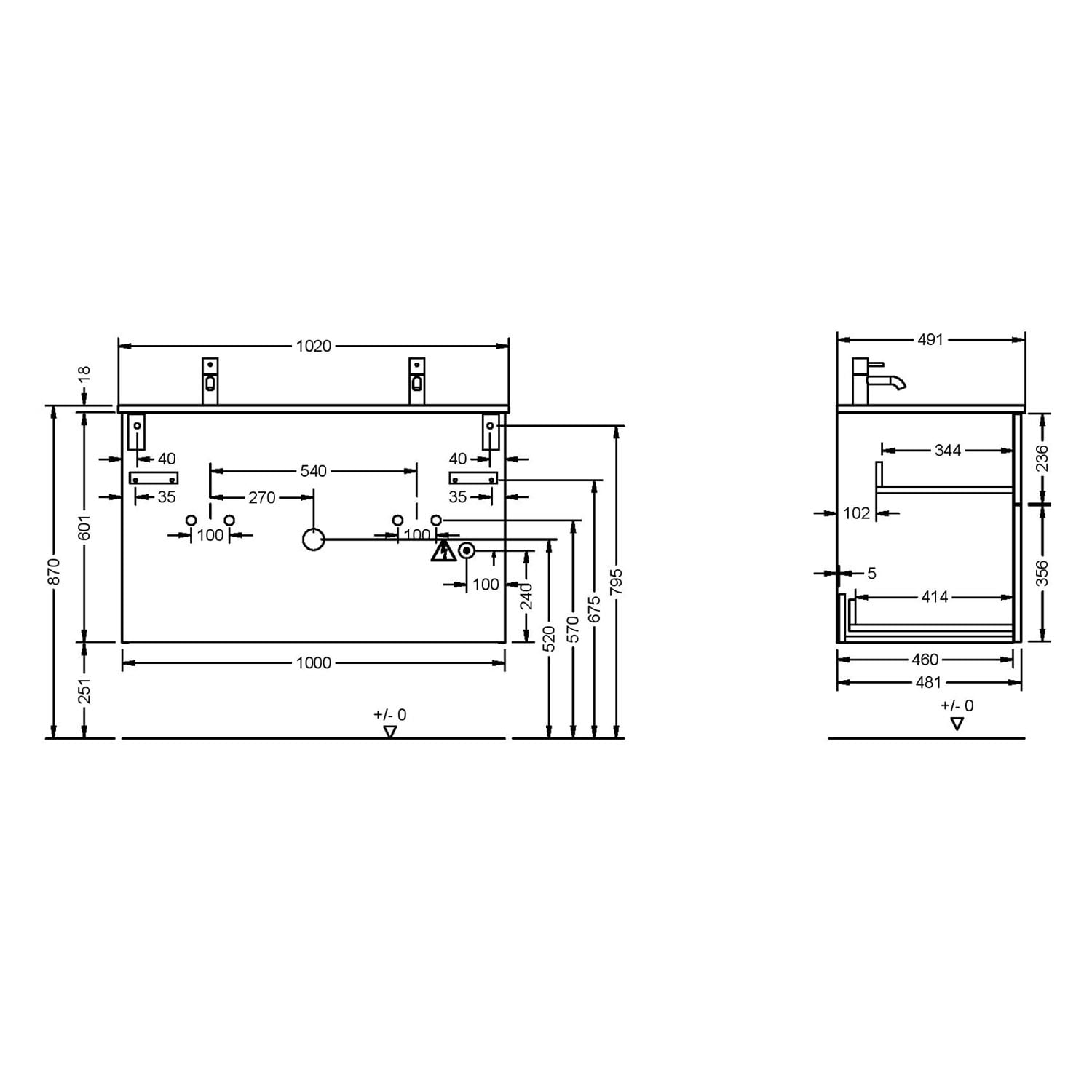 burgbad Eqio Waschtischkombination mit Mineralguss-Waschtisch, 102 cm, mit Stangengriff G0234