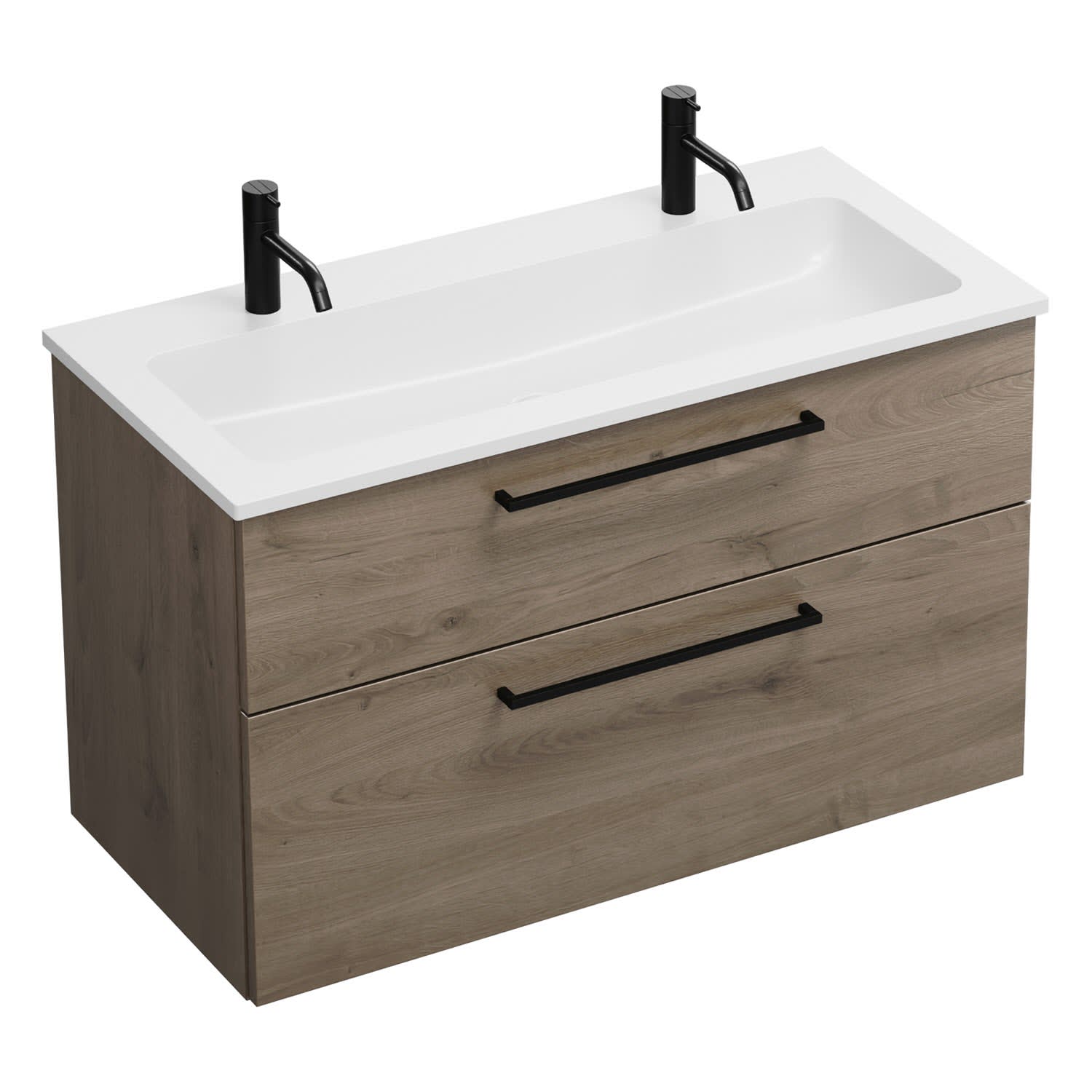 burgbad Eqio Waschtischkombination mit Mineralguss-Waschtisch, 102 cm, mit Stangengriff G0234